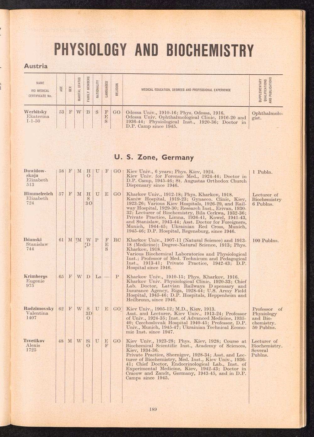 Displaced Persons Professional Medical Register / International Refugee Organization