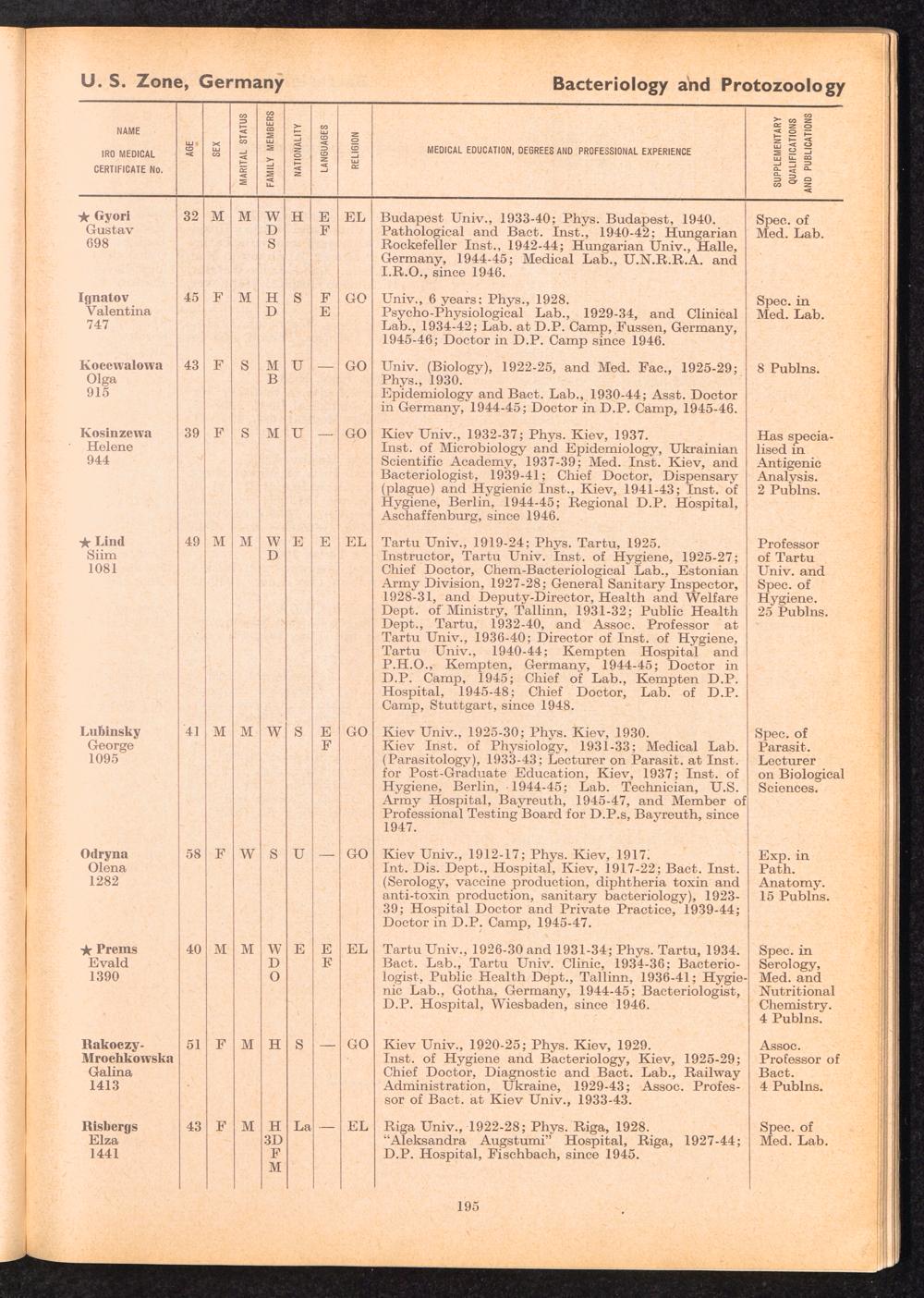 Displaced Persons Professional Medical Register / International Refugee Organization