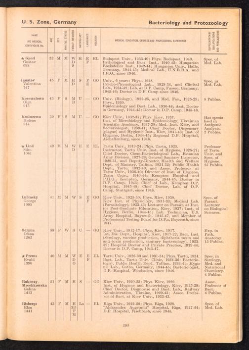Displaced Persons Professional Medical Register Physician Specialists