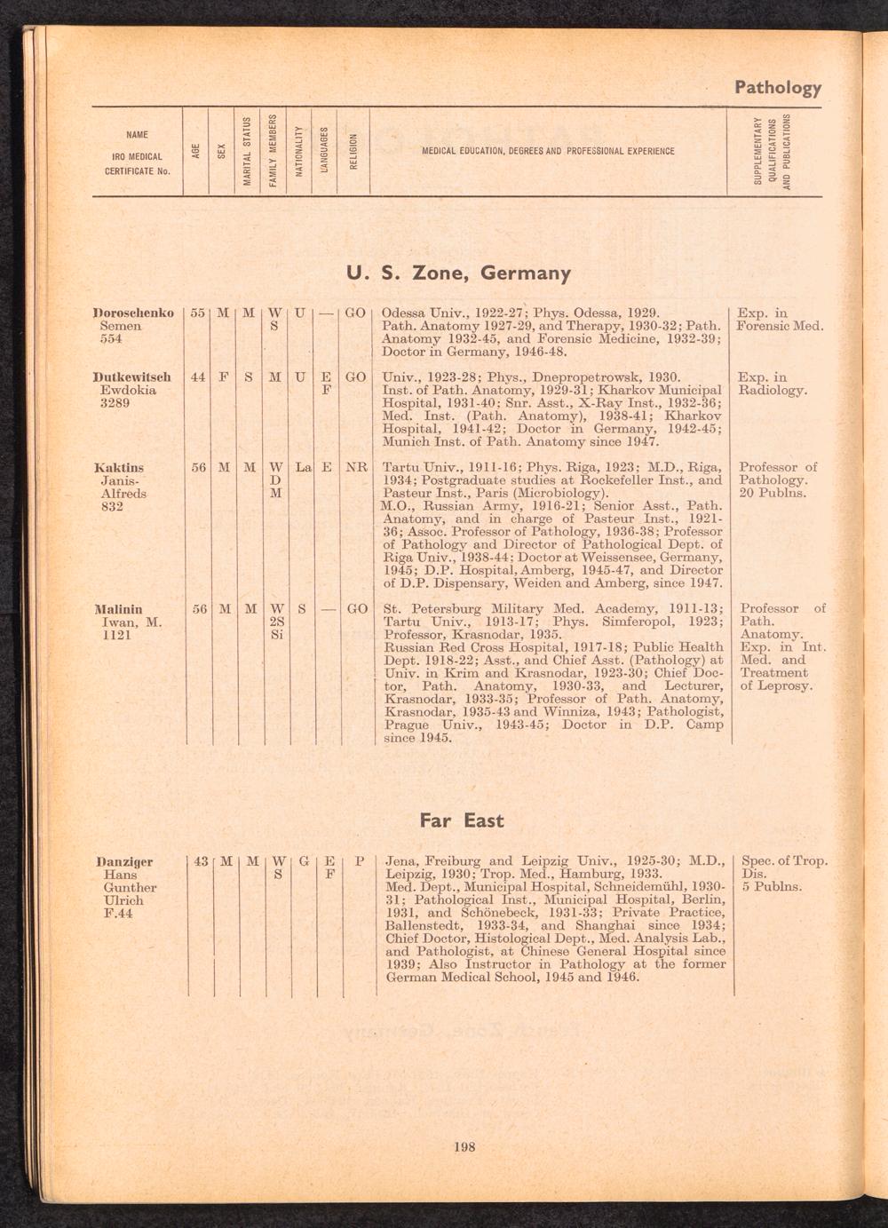 Displaced Persons Professional Medical Register / International Refugee Organization