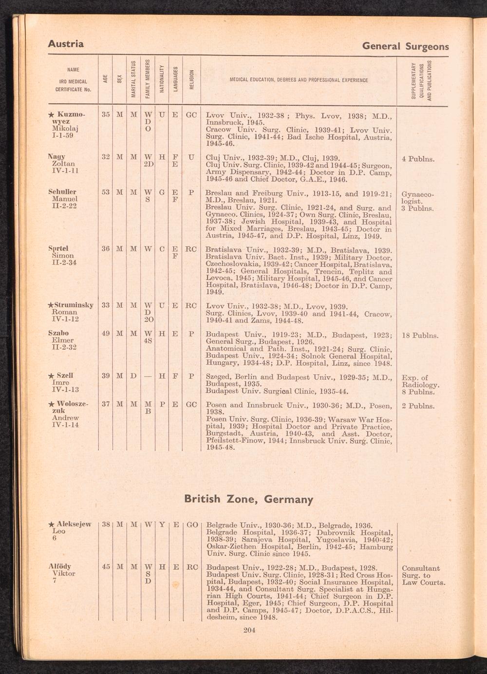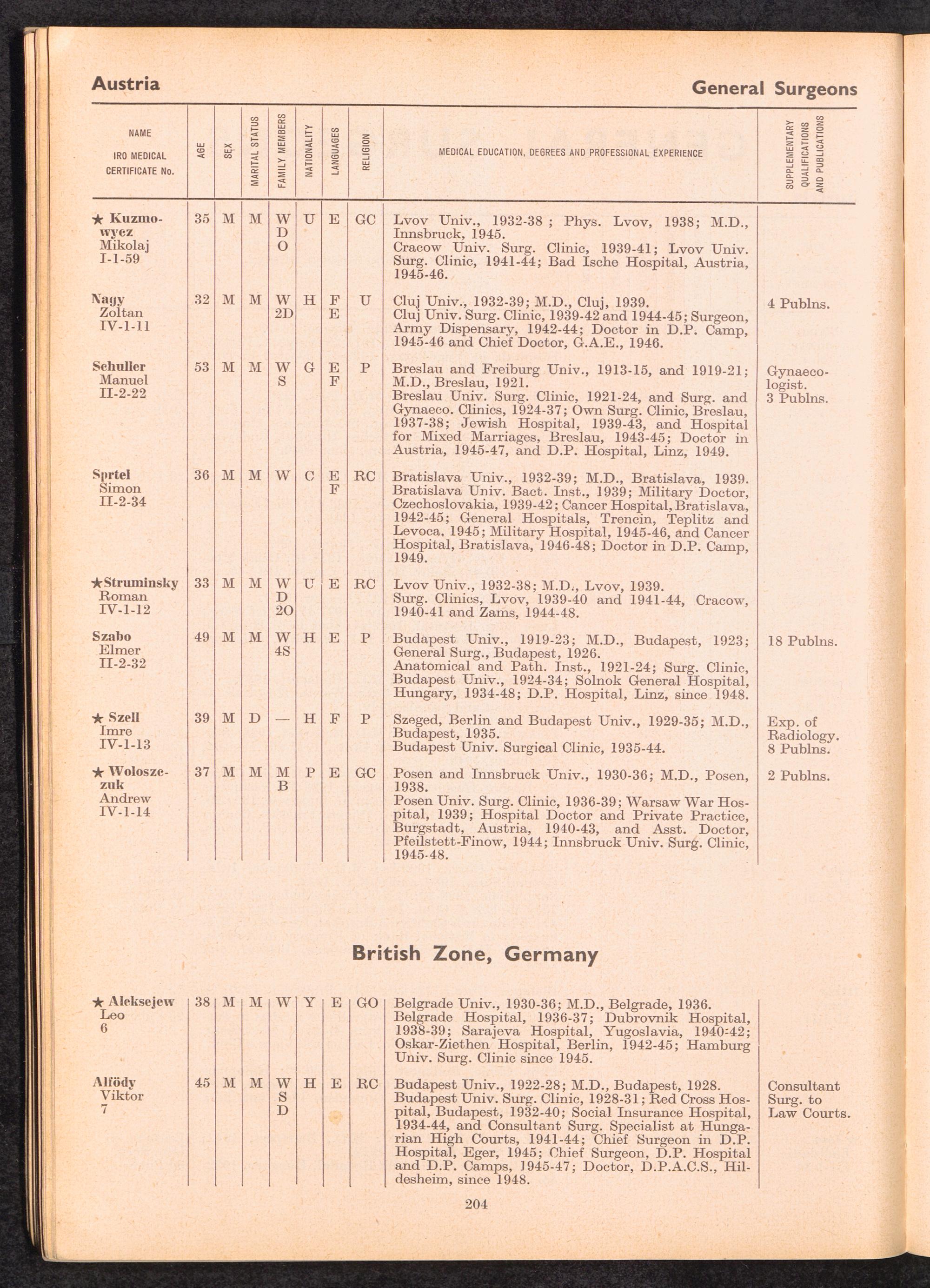 Displaced Persons Professional Medical Register Surgeon Specialists