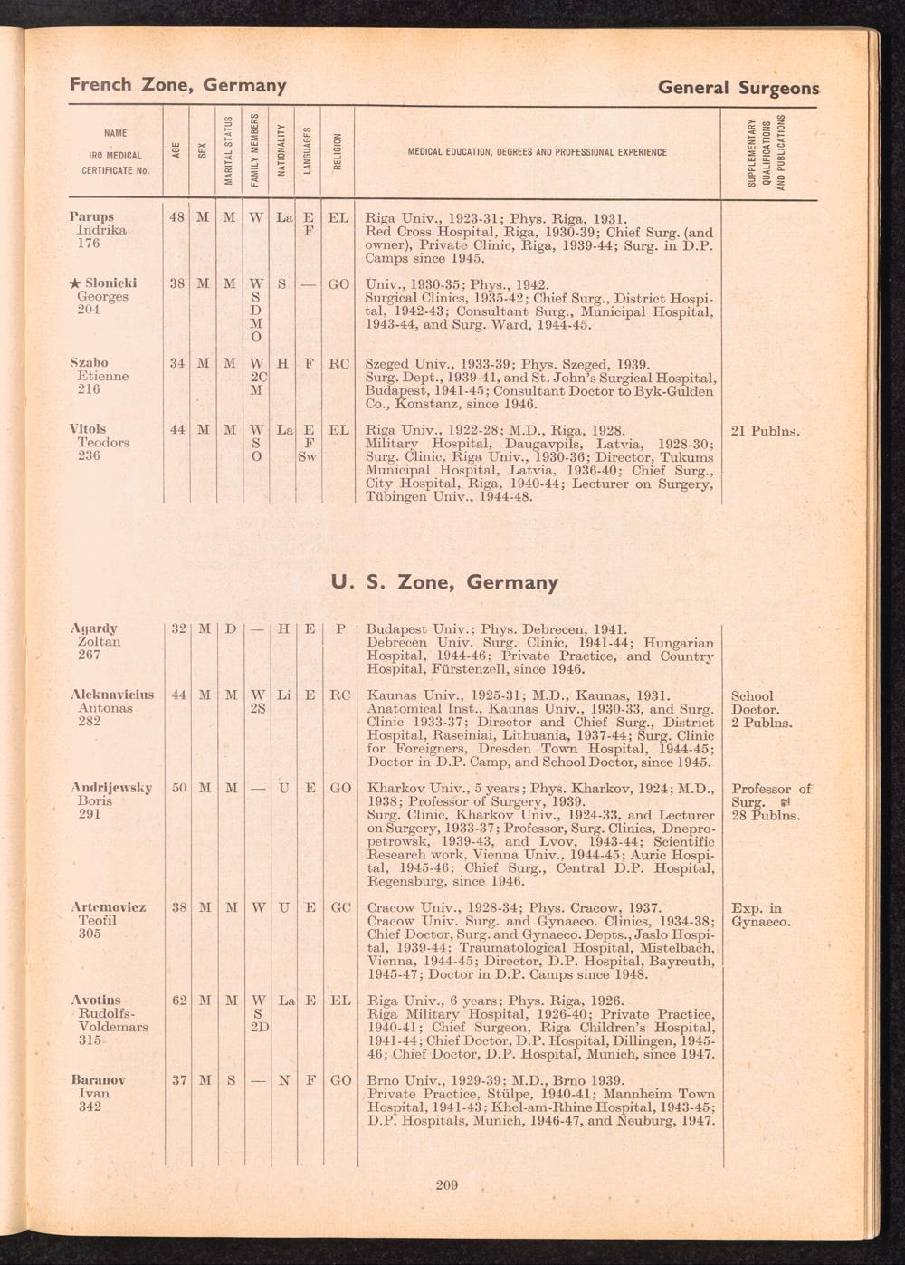 Displaced Persons Professional Medical Register Surgeon Specialists