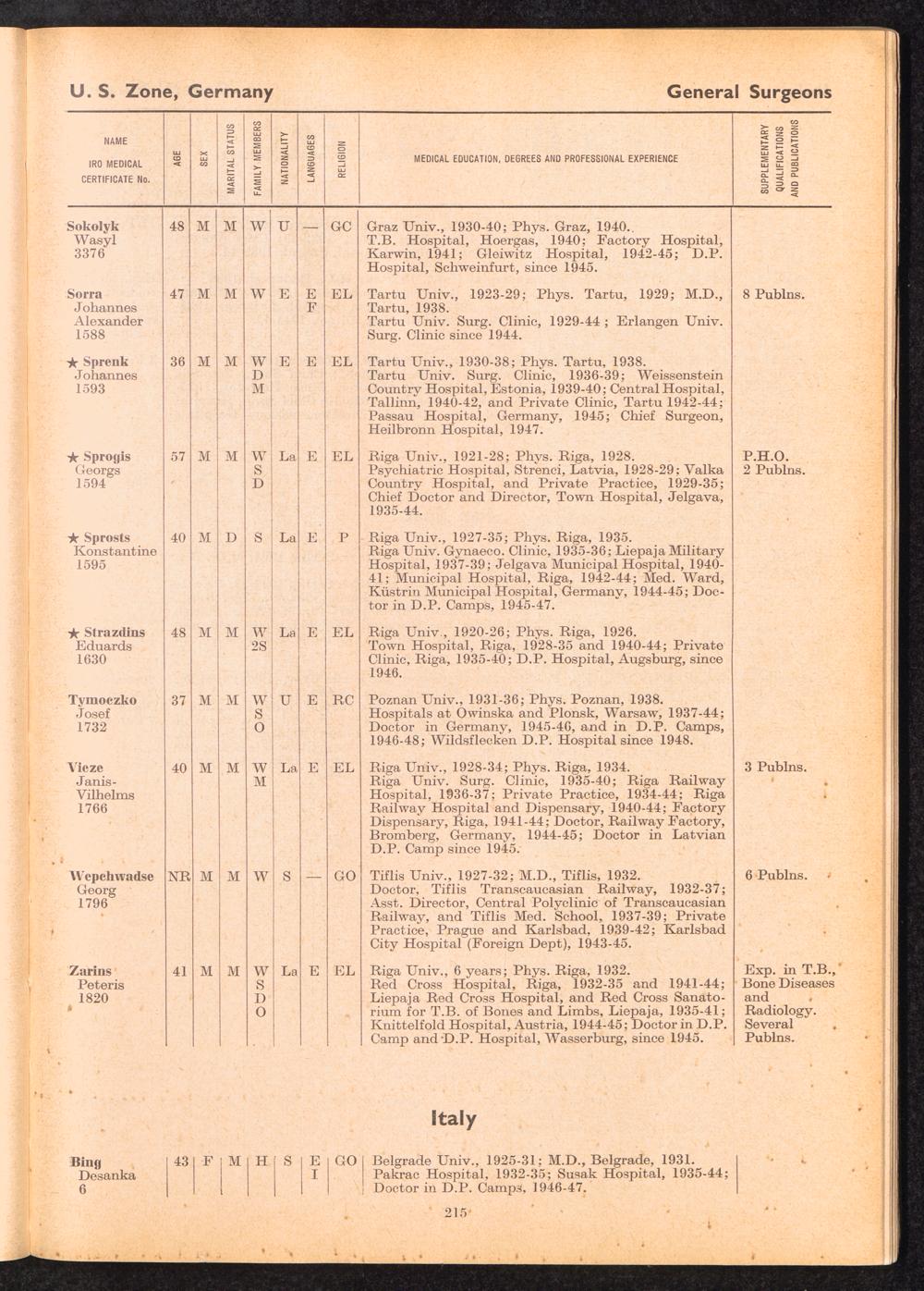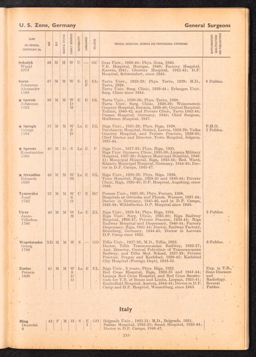 Displaced Persons Professional Medical Register Surgeon Specialists