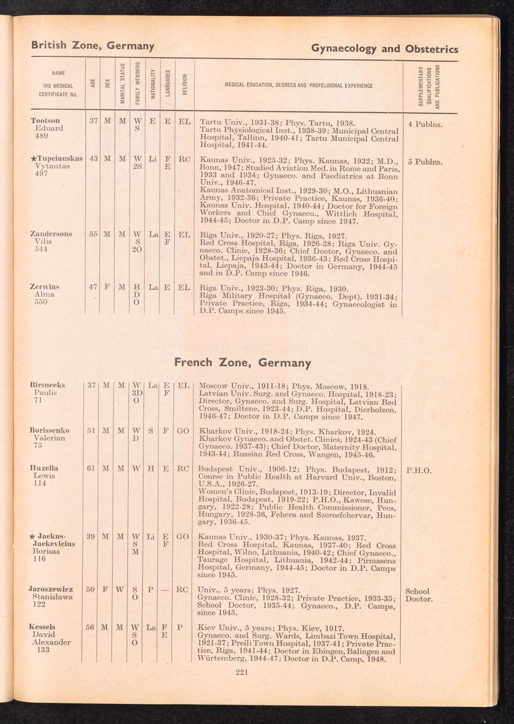 Displaced Persons Professional Medical Register / International Refugee Organization