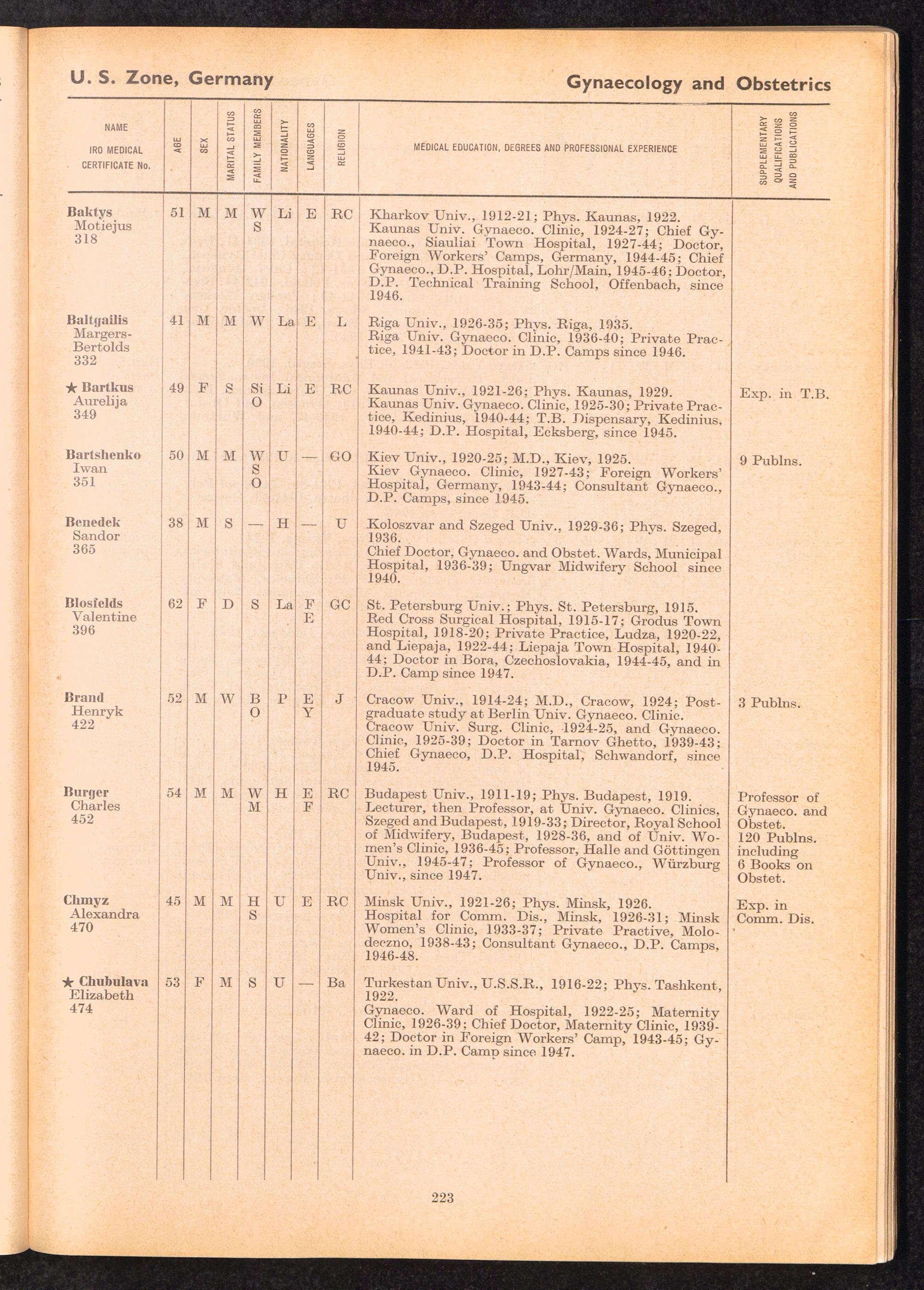 Displaced Persons Professional Medical Register / International Refugee Organization
