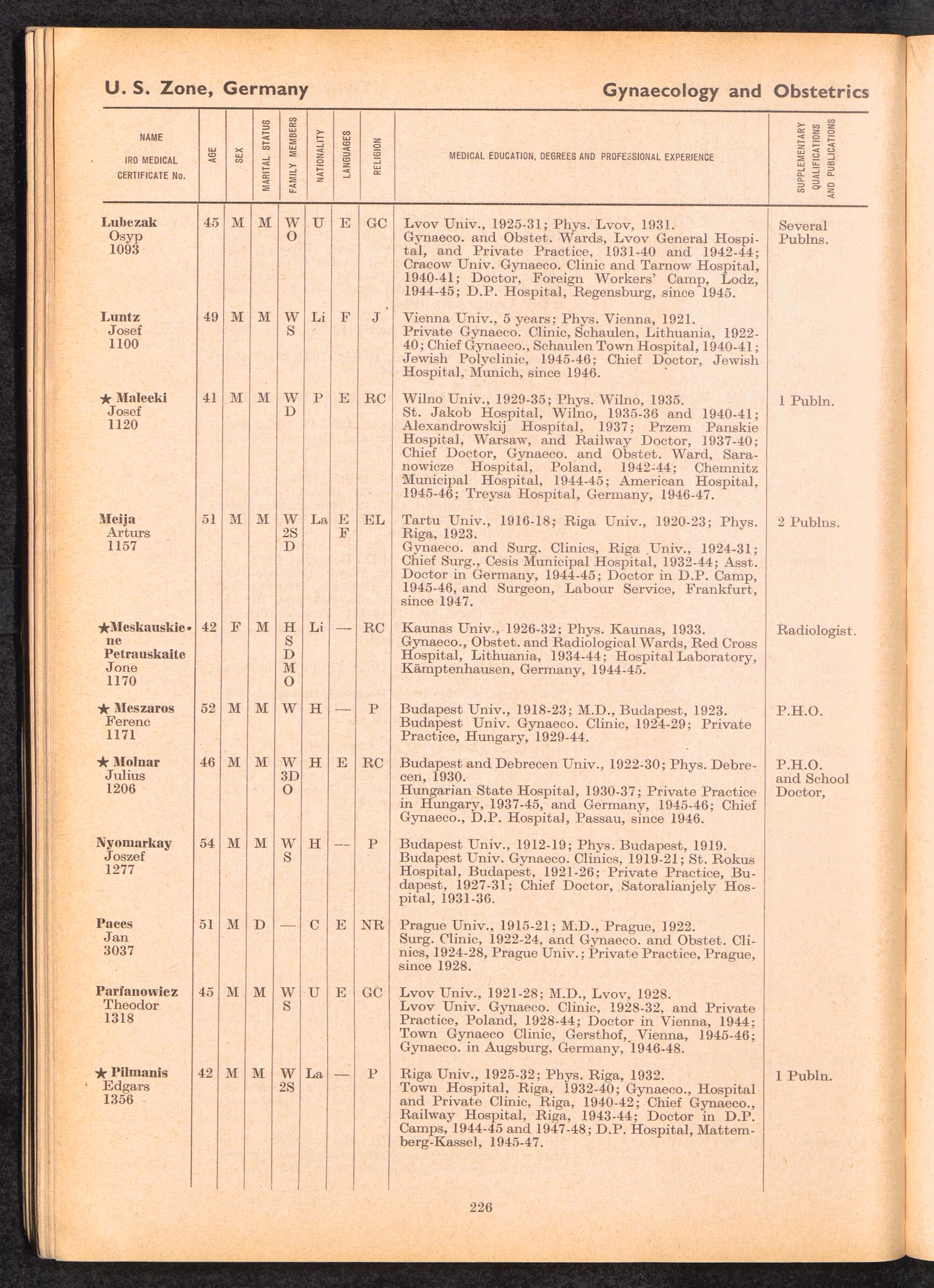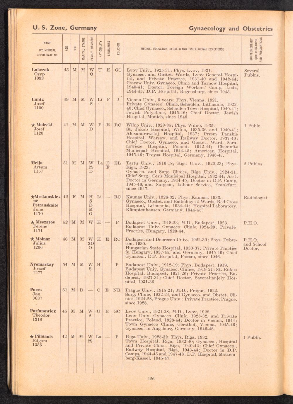 Displaced Persons Professional Medical Register / International Refugee Organization