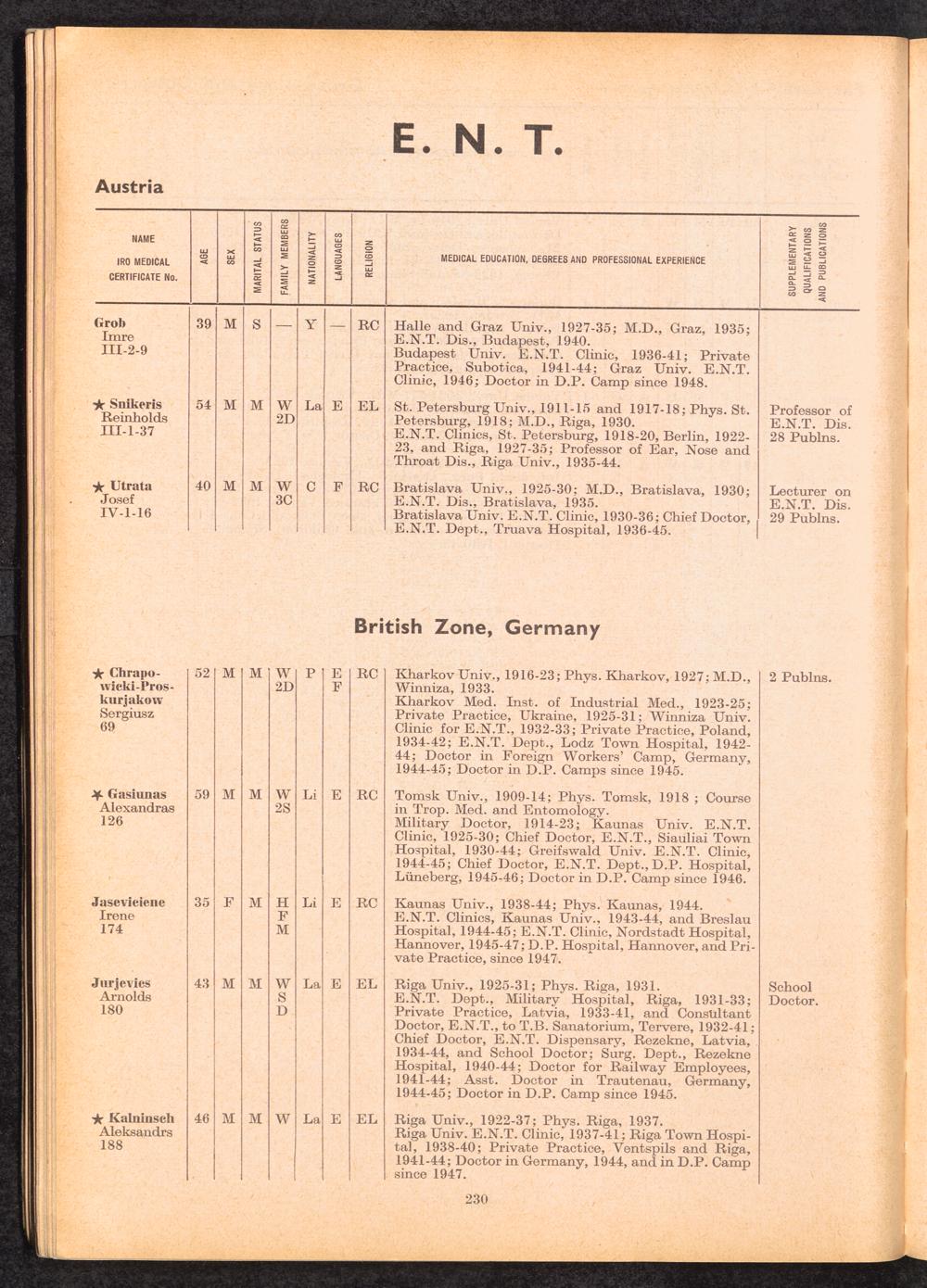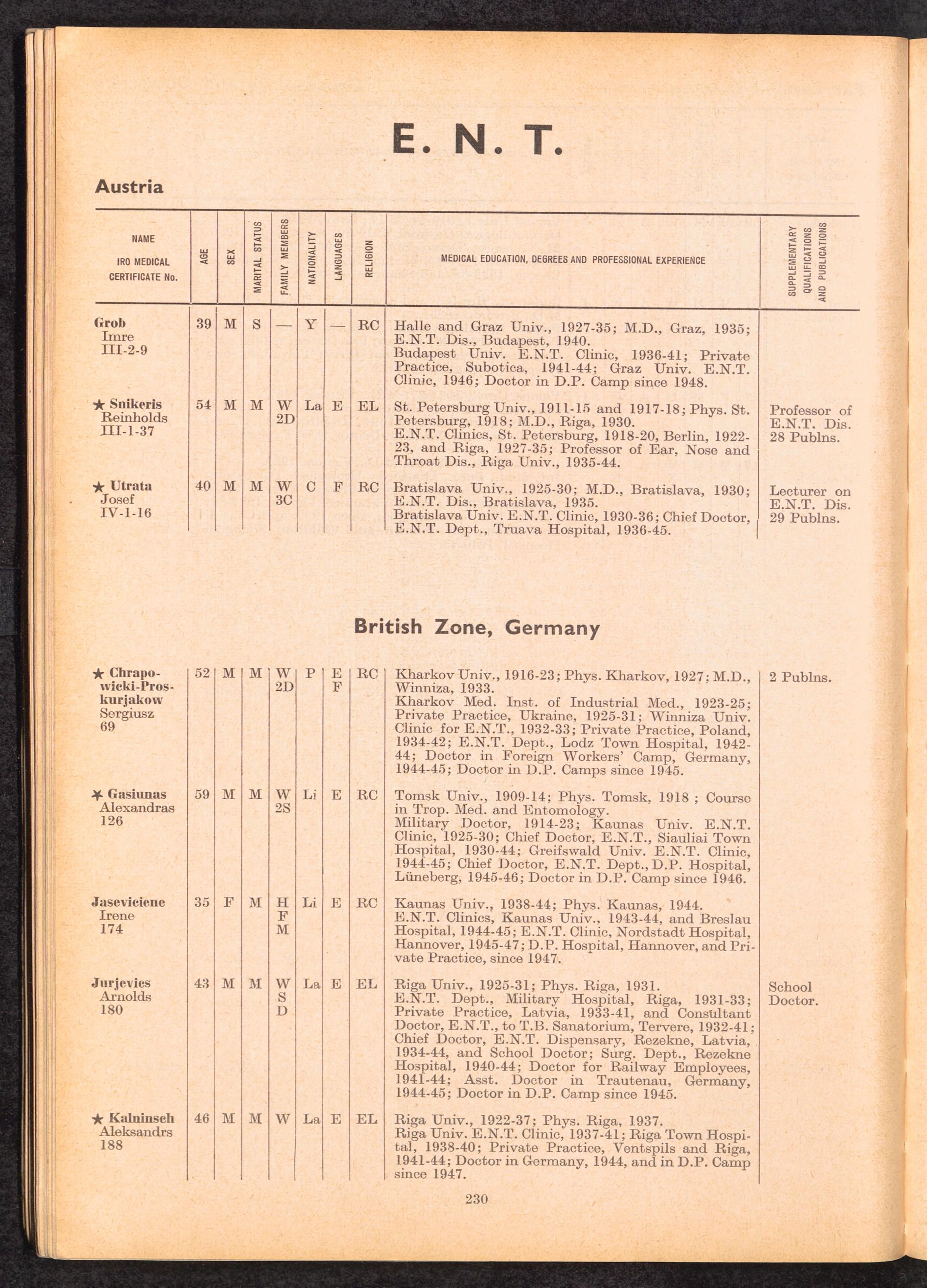 Displaced Persons Professional Medical Register / International Refugee Organization
