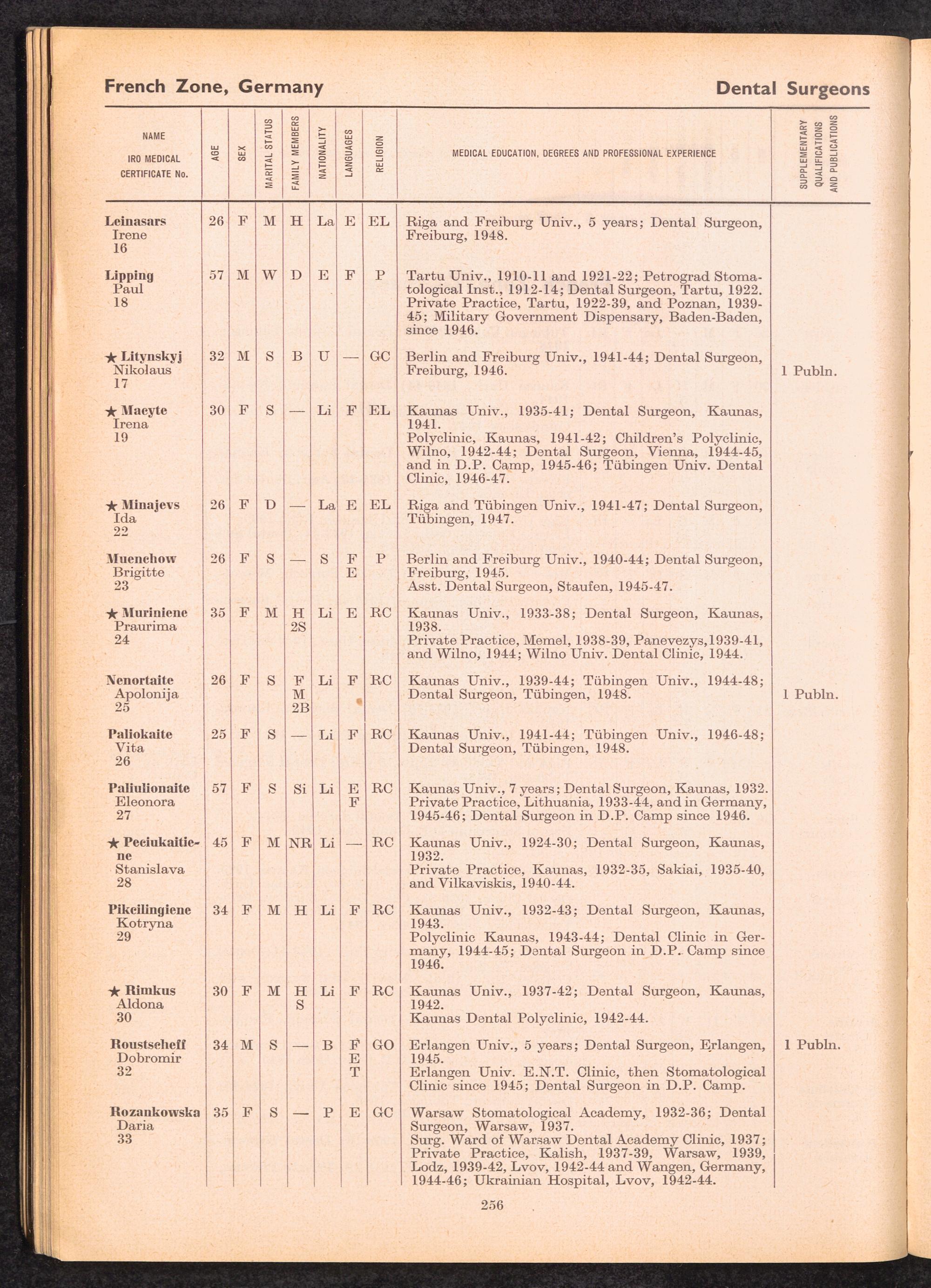 Displaced Persons Professional Medical Register / International Refugee Organization