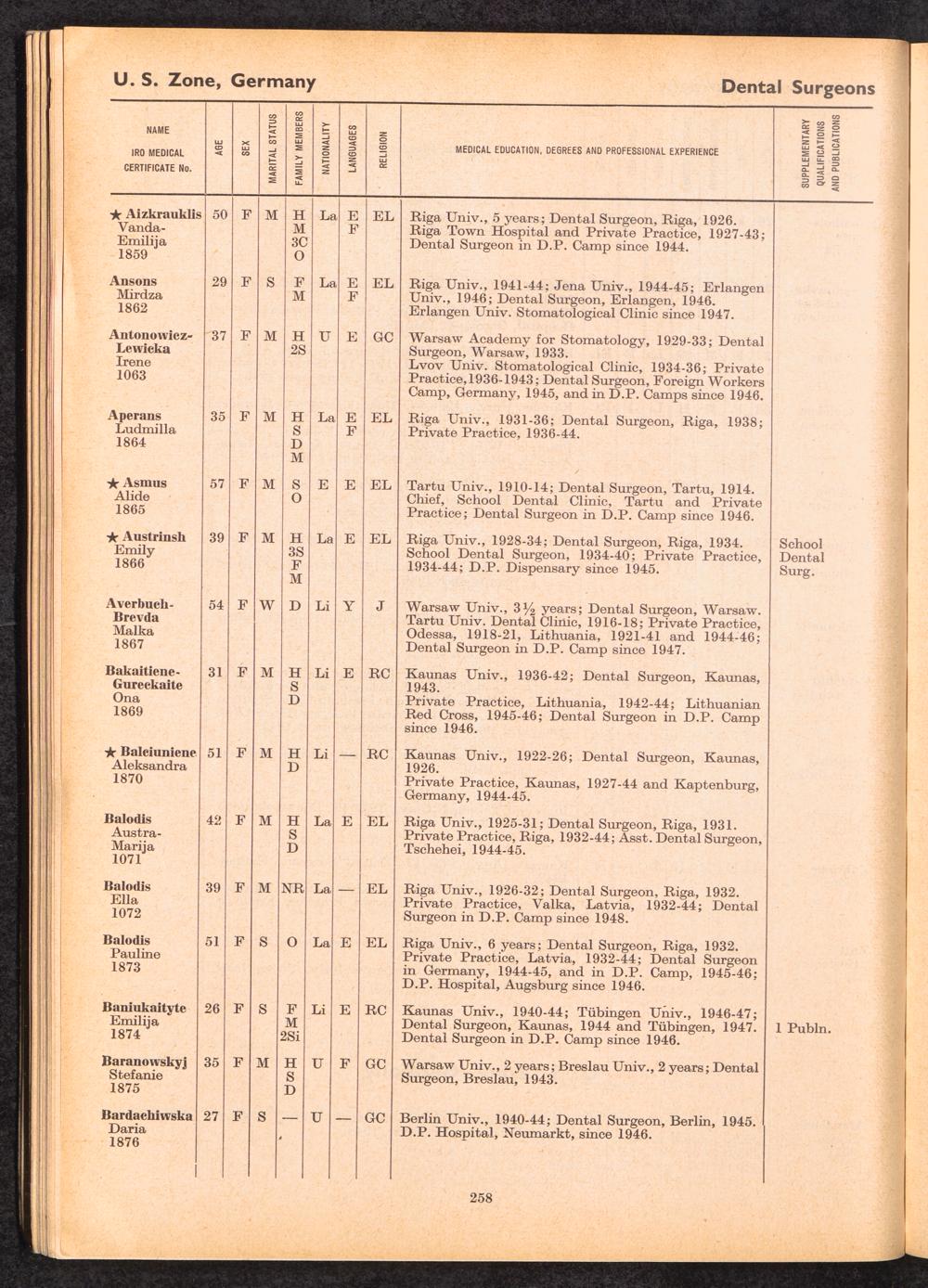 Displaced Persons Professional Medical Register / International Refugee Organization