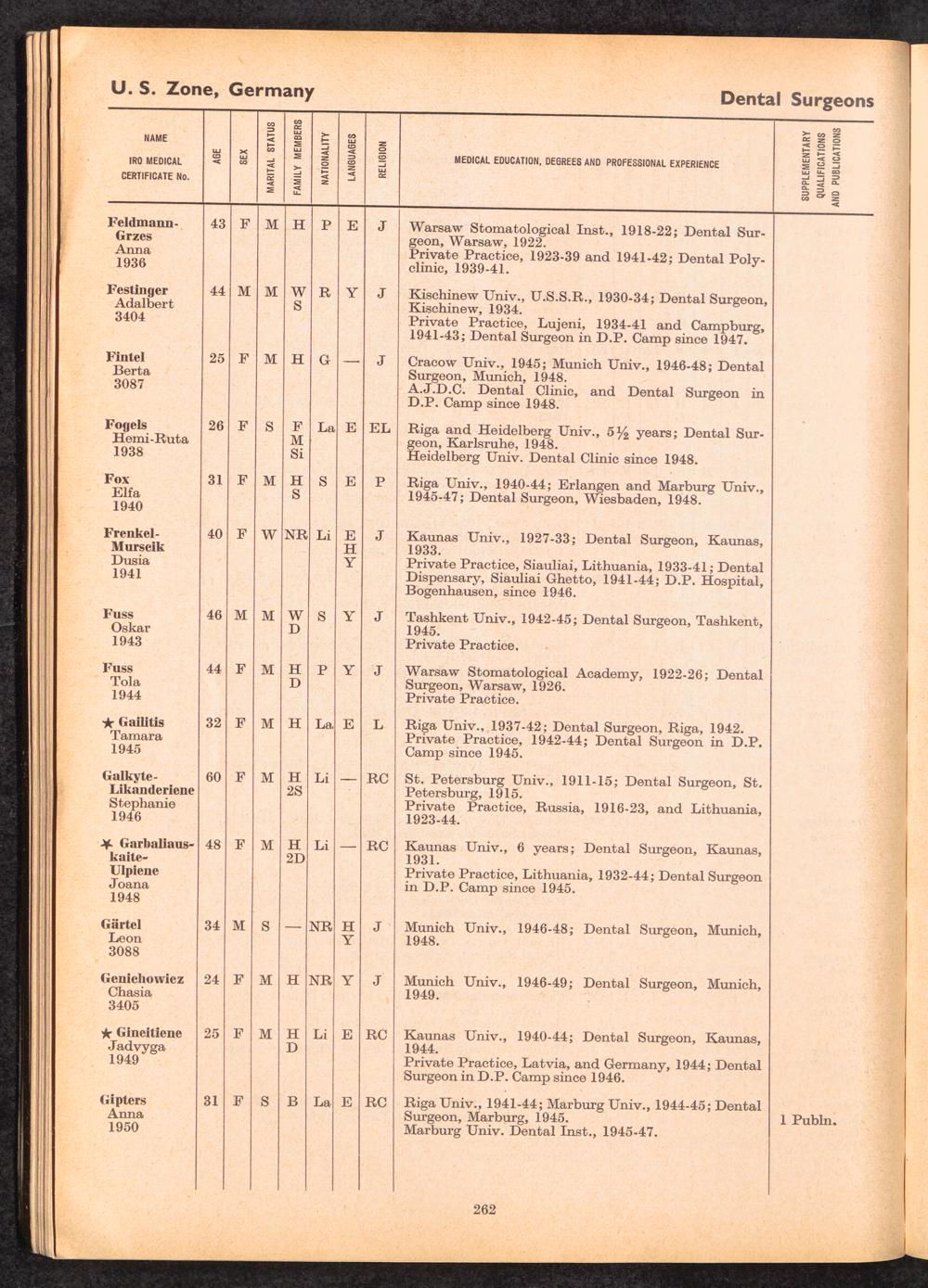 Displaced Persons Professional Medical Register / International Refugee Organization