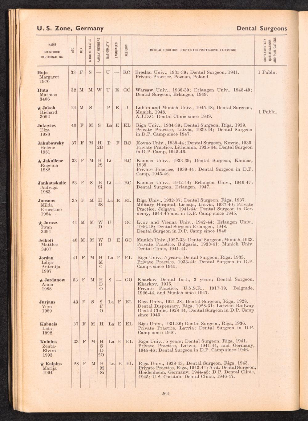 Displaced Persons Professional Medical Register / International Refugee Organization