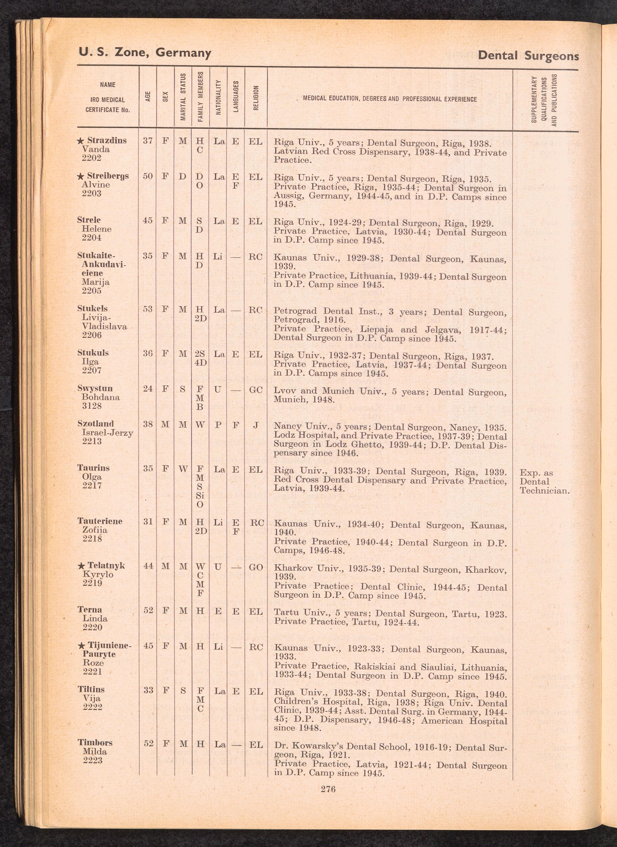 Displaced Persons Professional Medical Register / International Refugee Organization