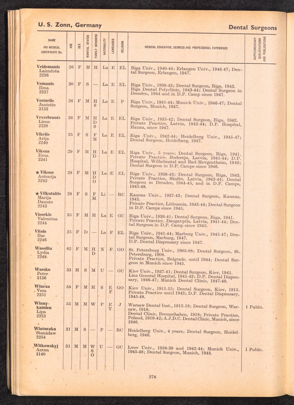 Displaced Persons Professional Medical Register / International Refugee Organization