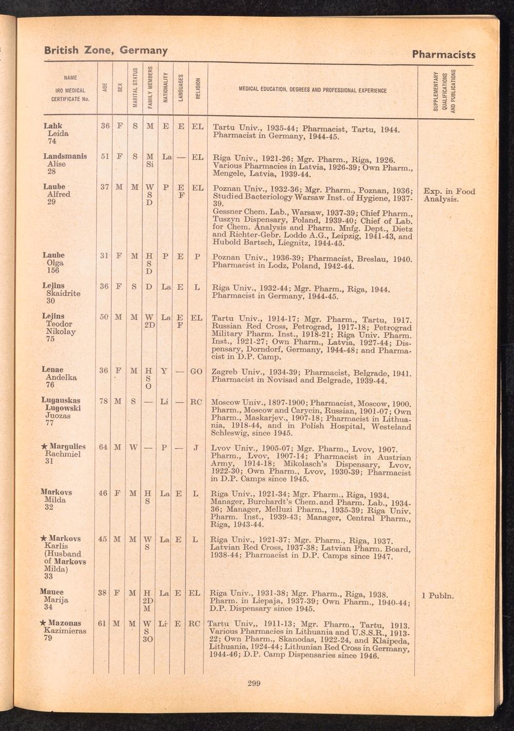 Displaced Persons Professional Medical Register / International Refugee Organization