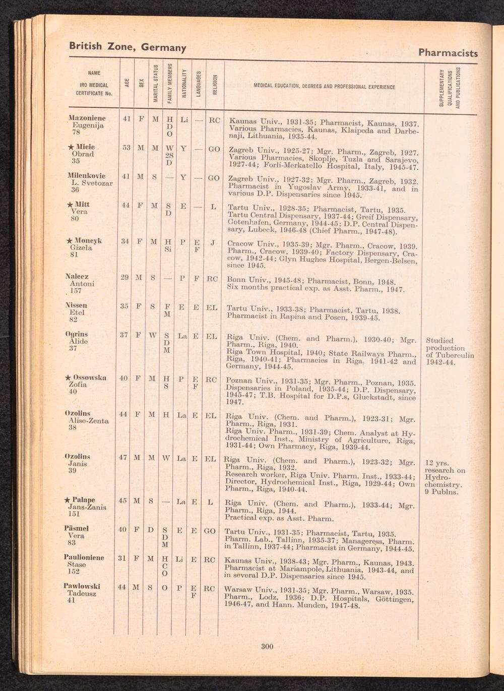 Displaced Persons Professional Medical Register / International Refugee Organization
