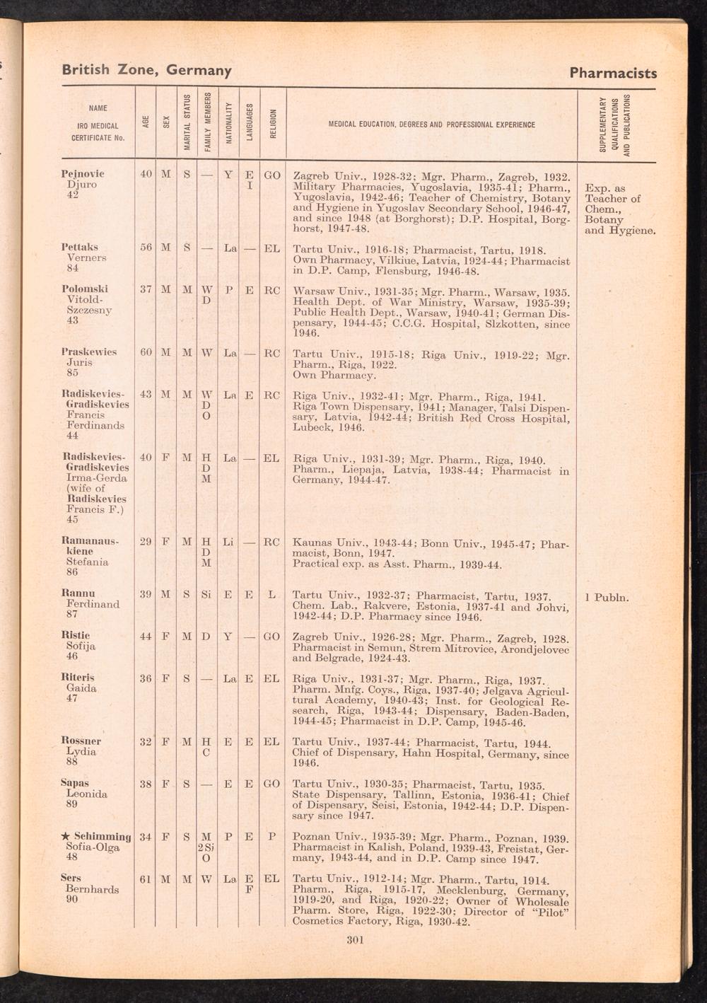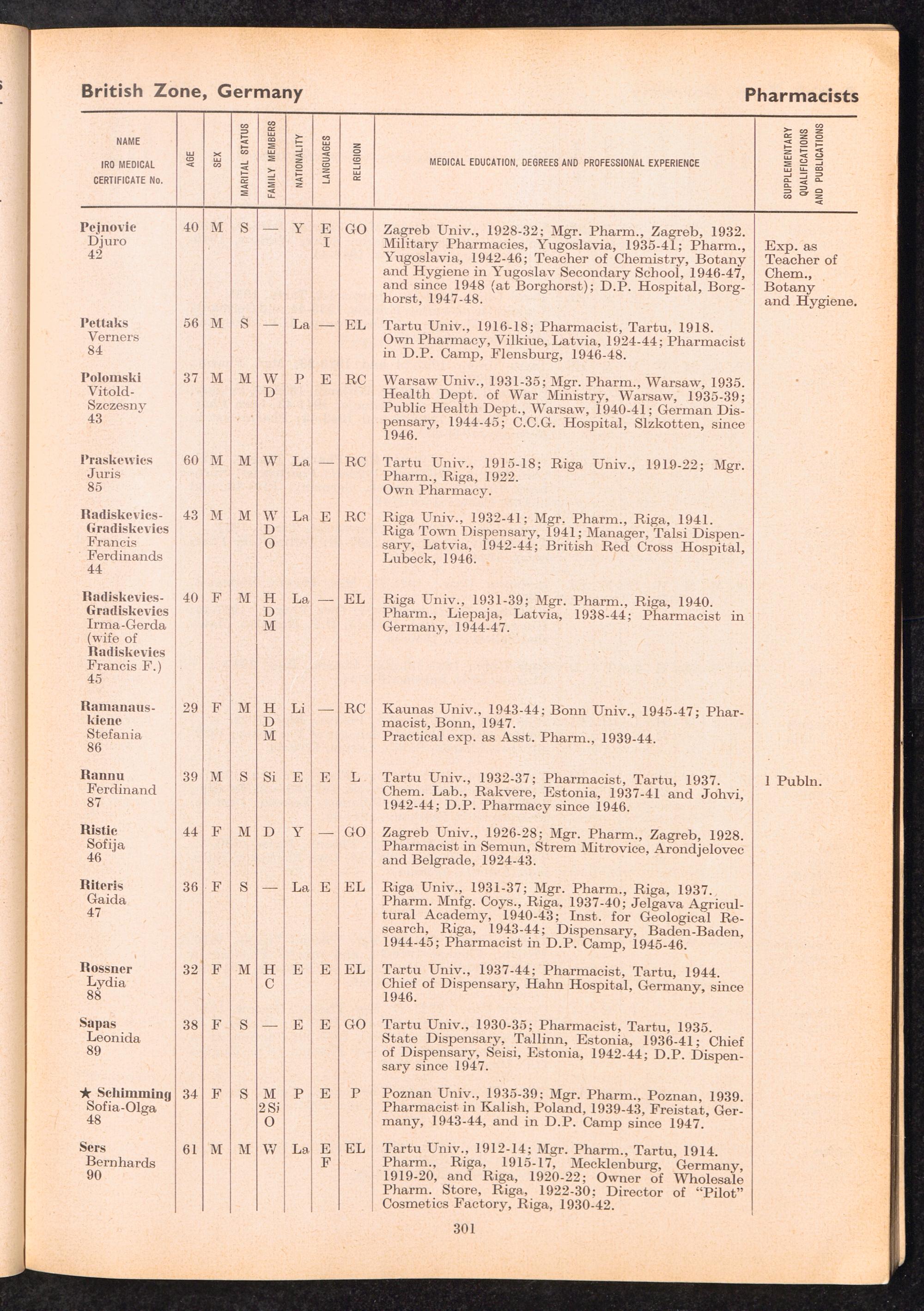 Displaced Persons Professional Medical Register / International Refugee Organization