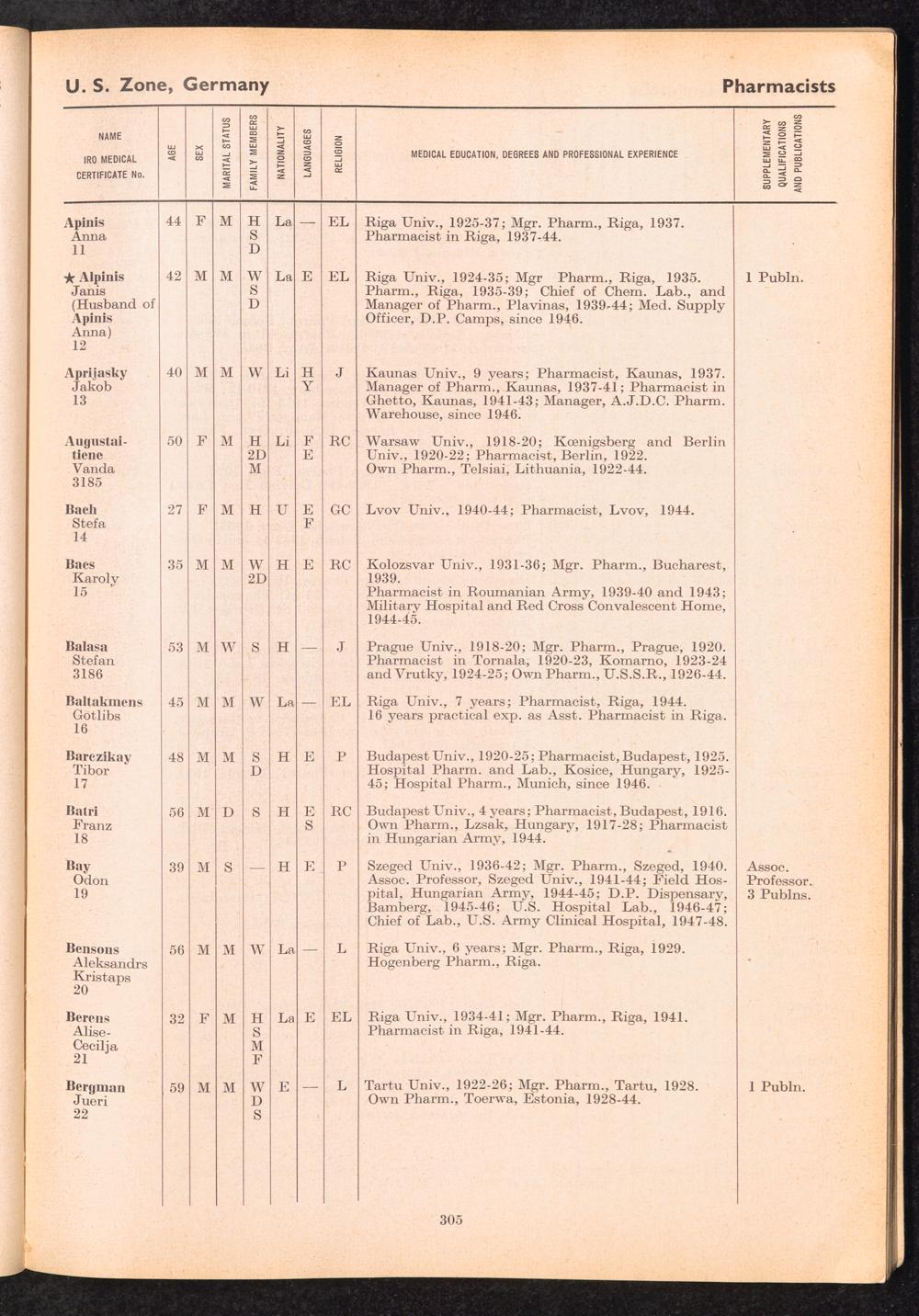 Displaced Persons Professional Medical Register / International Refugee Organization