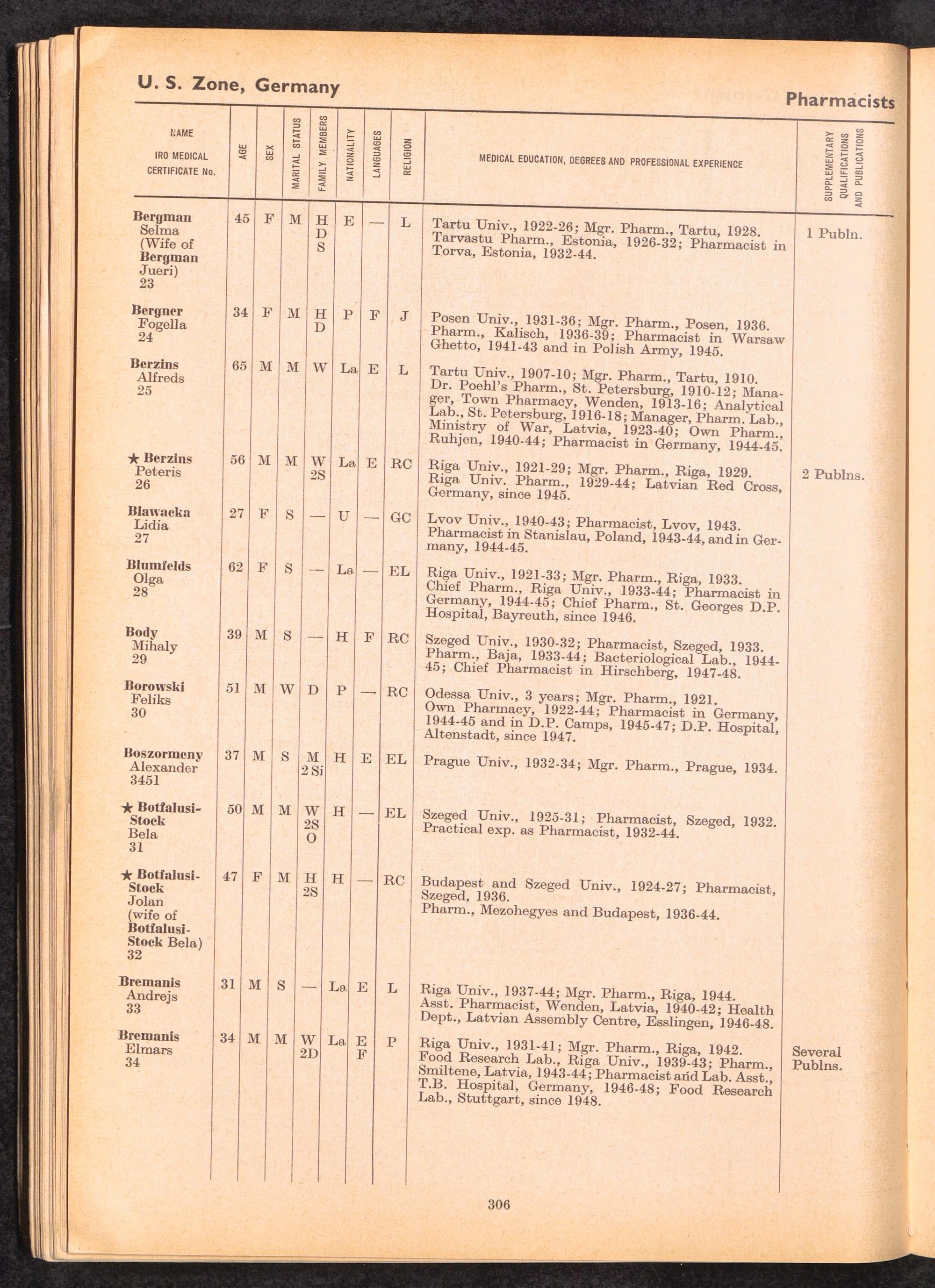 Displaced Persons Professional Medical Register / International Refugee Organization