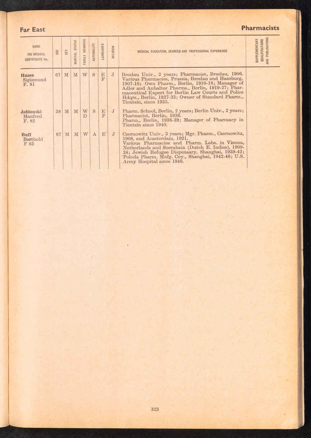 Displaced Persons Professional Medical Register / International Refugee Organization