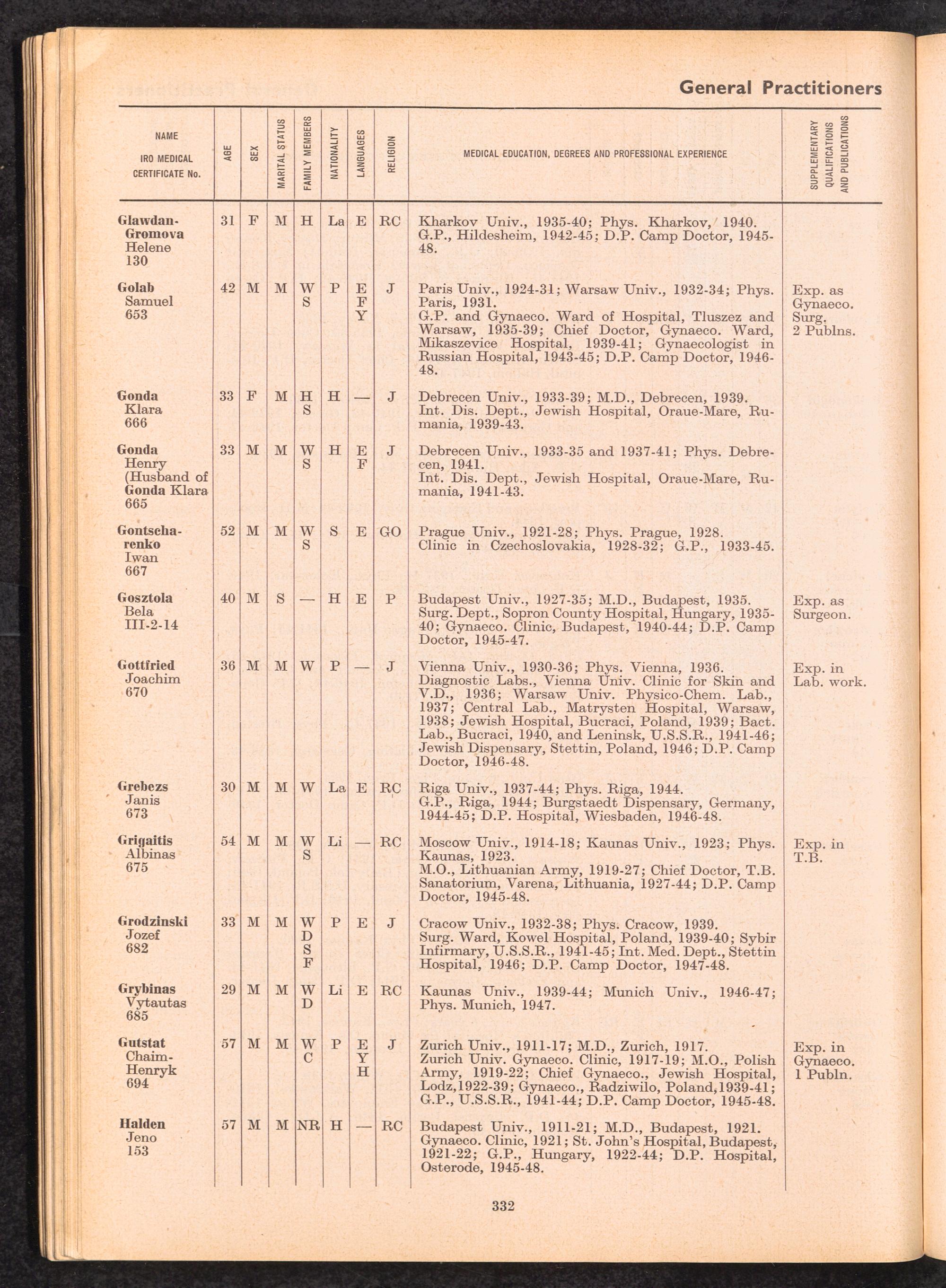 Displaced Persons Professional Medical Register / International Refugee Organization