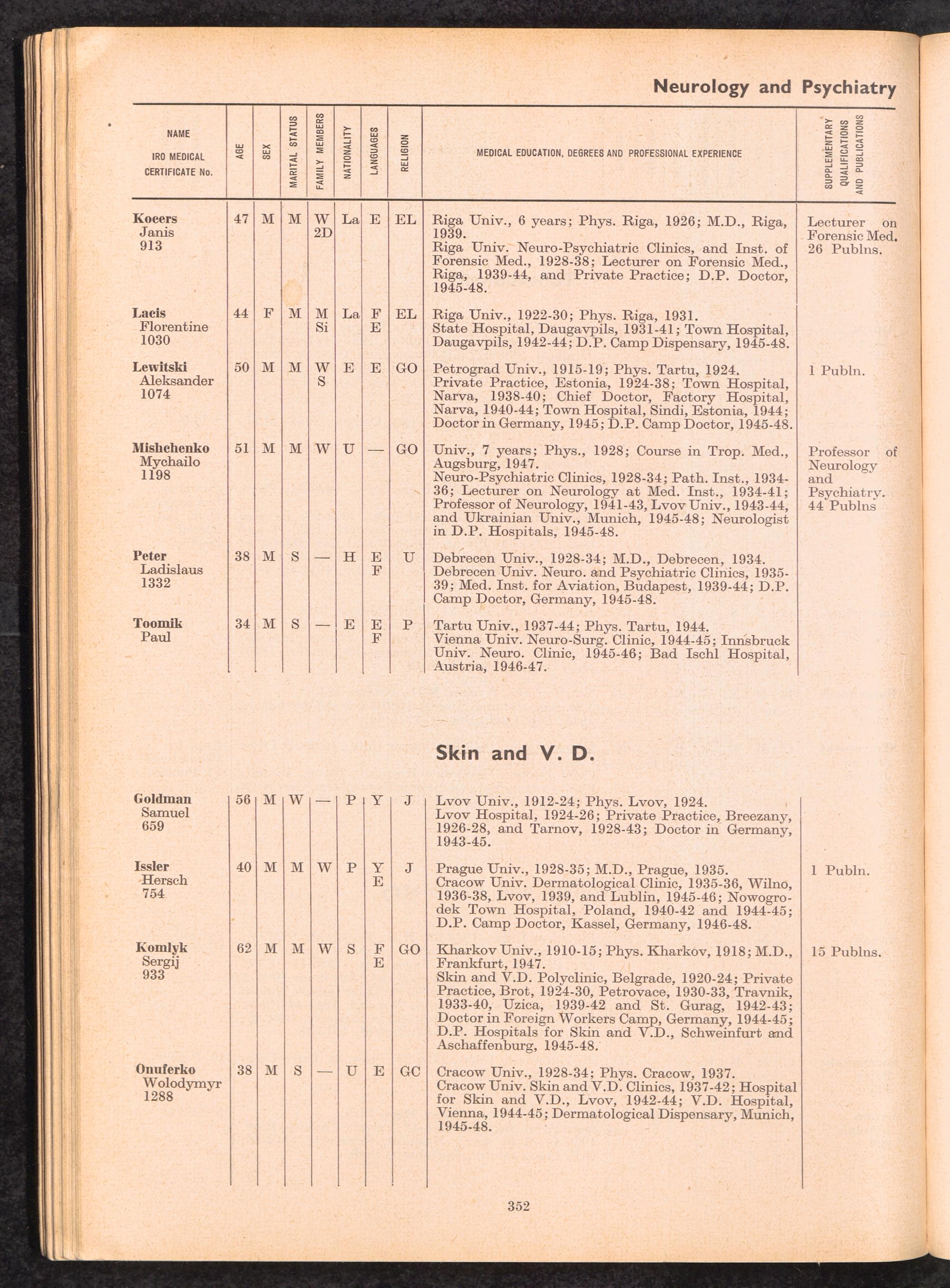 Displaced Persons Professional Medical Register / International Refugee Organization