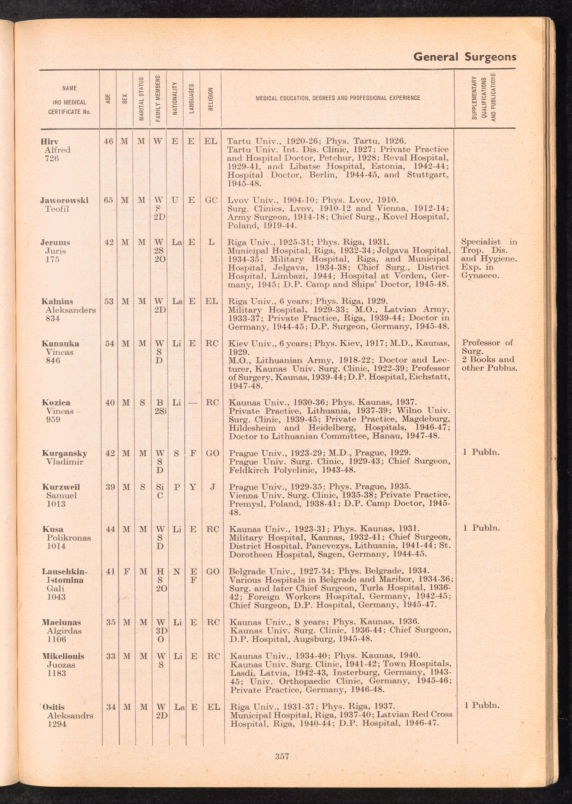 Displaced Persons Professional Medical Register / International Refugee Organization