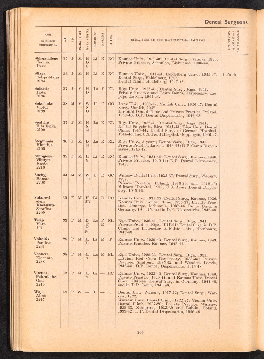 Displaced Persons Professional Medical Register / International Refugee Organization