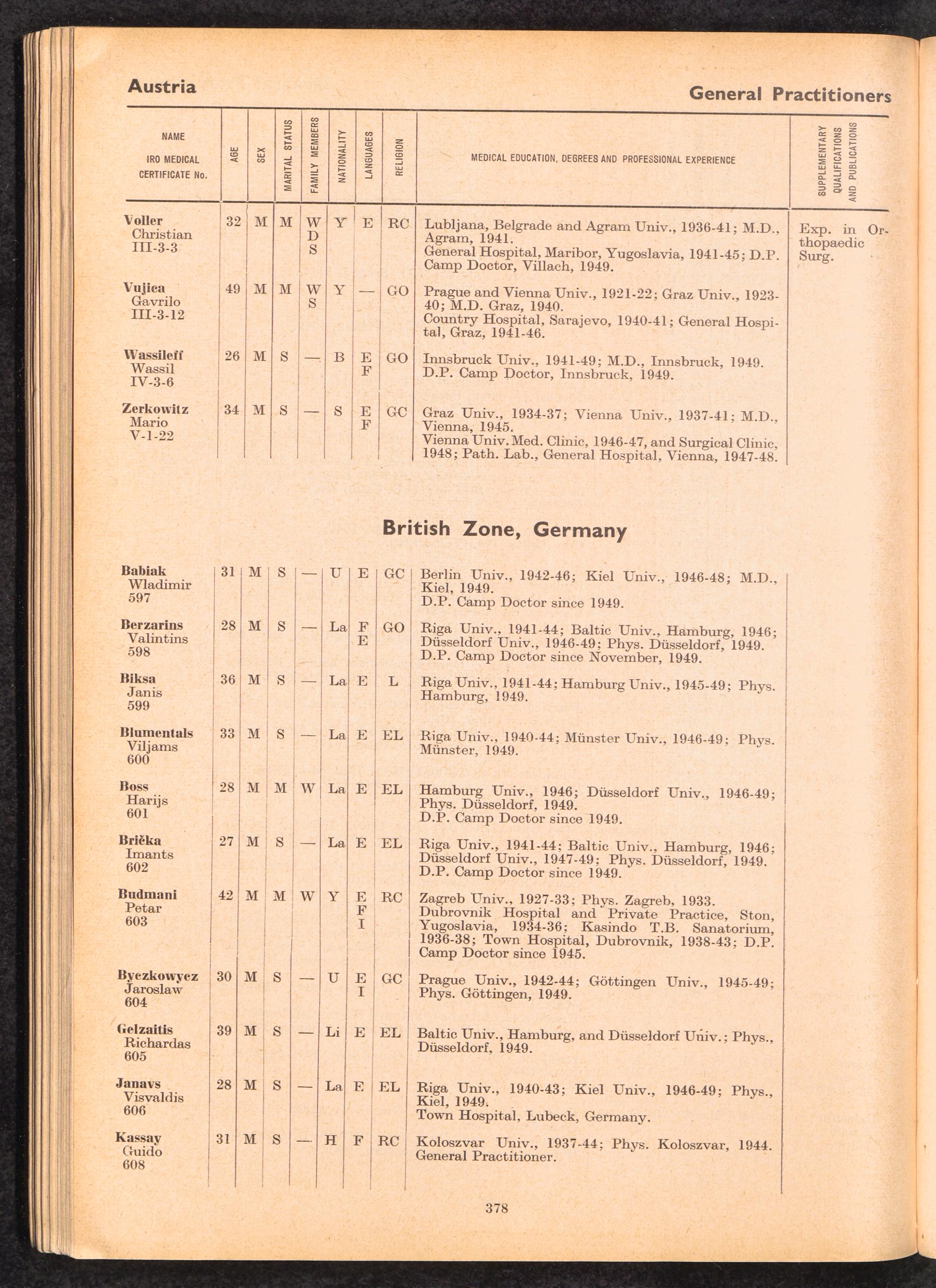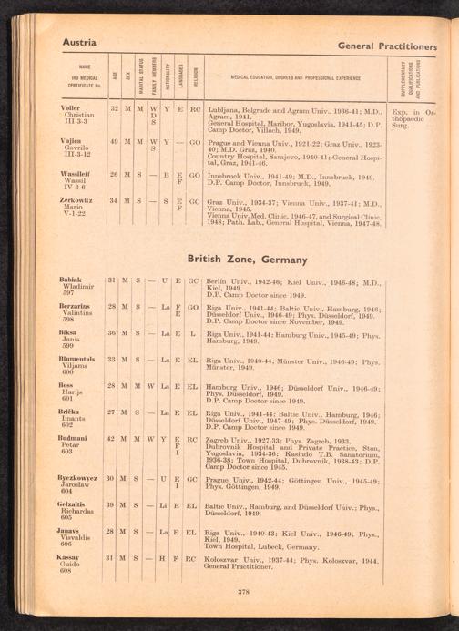Displaced Persons Professional Medical Register / International Refugee Organization