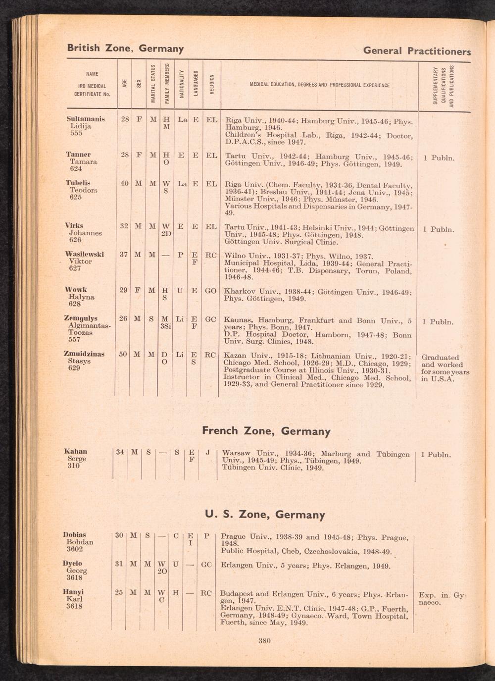 Displaced Persons Professional Medical Register / International Refugee Organization