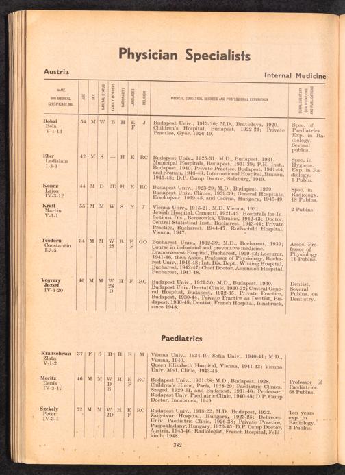 Displaced Persons Professional Medical Register / International Refugee Organization