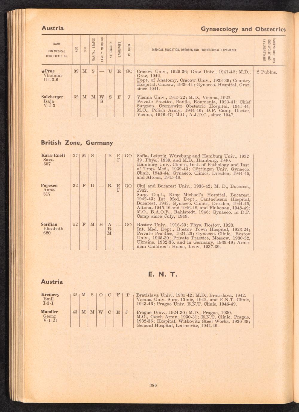 Displaced Persons Professional Medical Register / International Refugee Organization