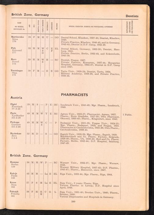 Displaced Persons Professional Medical Register / International Refugee Organization