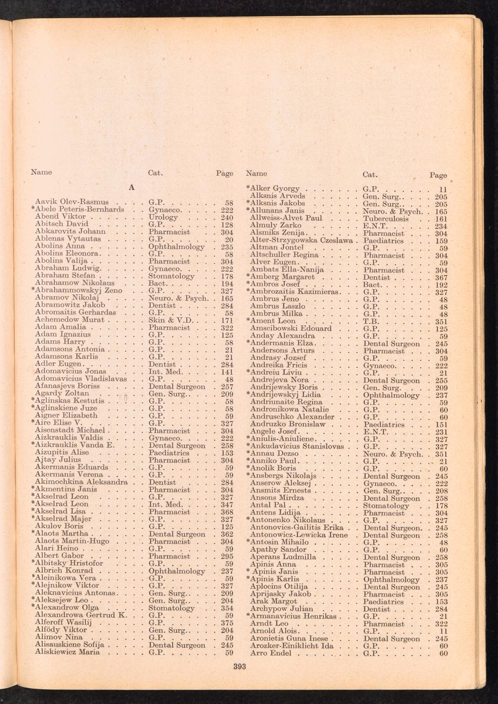 Displaced Persons Professional Medical Register Index