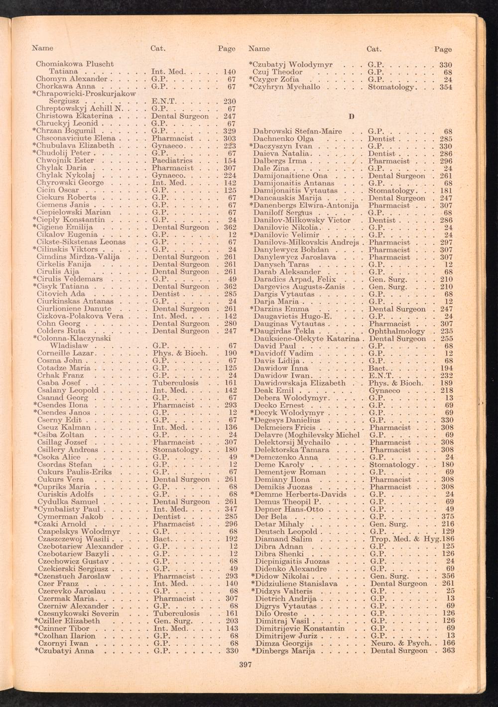 Displaced Persons Professional Medical Register Index