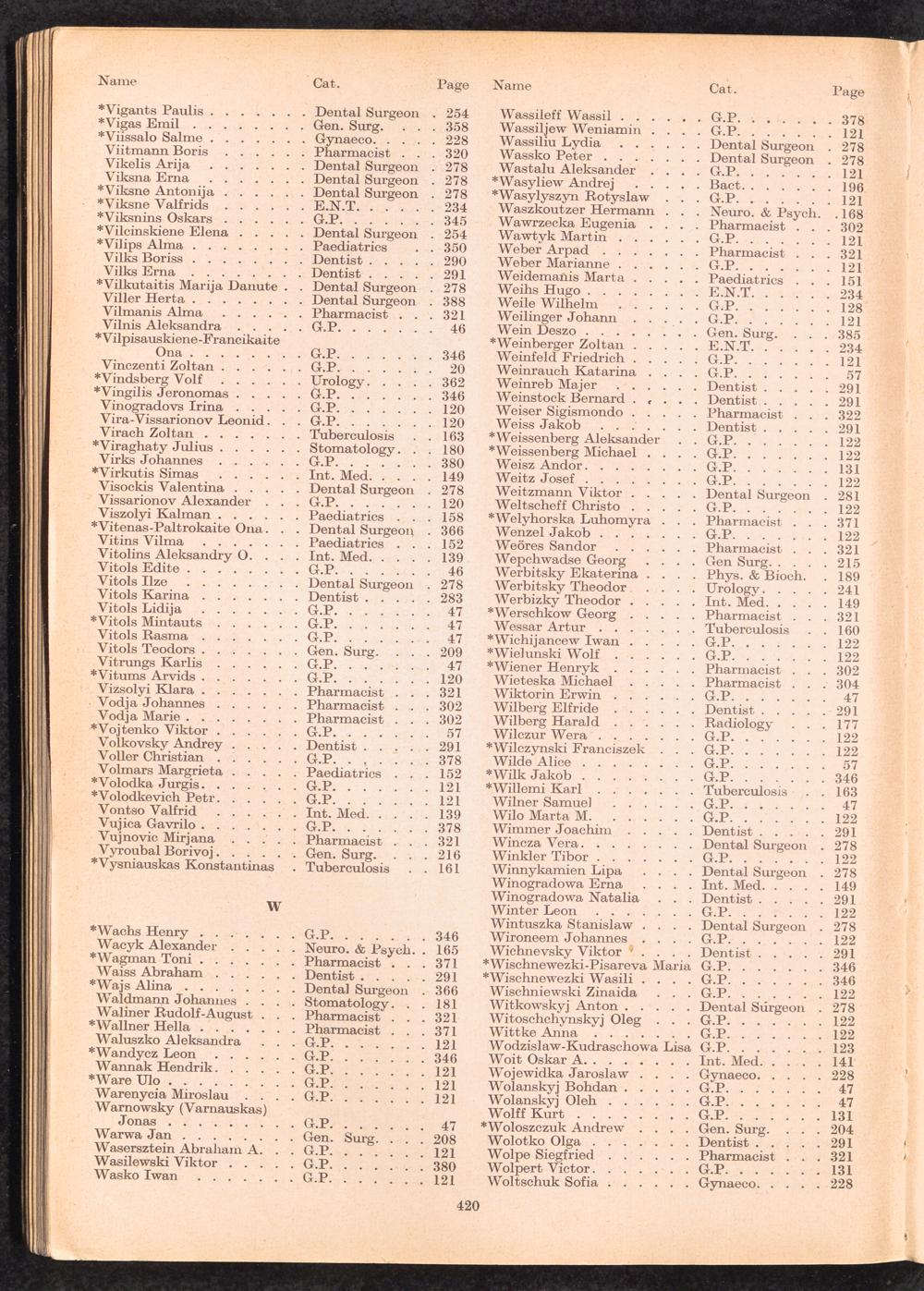 Displaced Persons Professional Medical Register Index