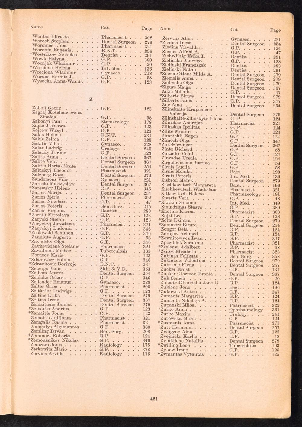 Displaced Persons Professional Medical Register Index