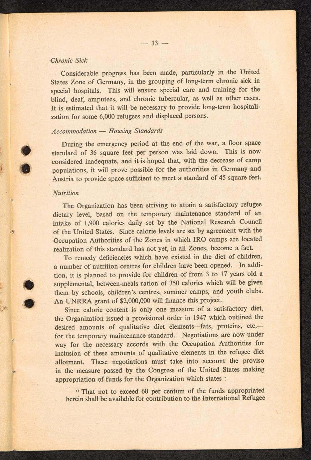 Report to the General Council of the International Refugee Organization by the Executive... Section VI: Health, Care and Maintenance