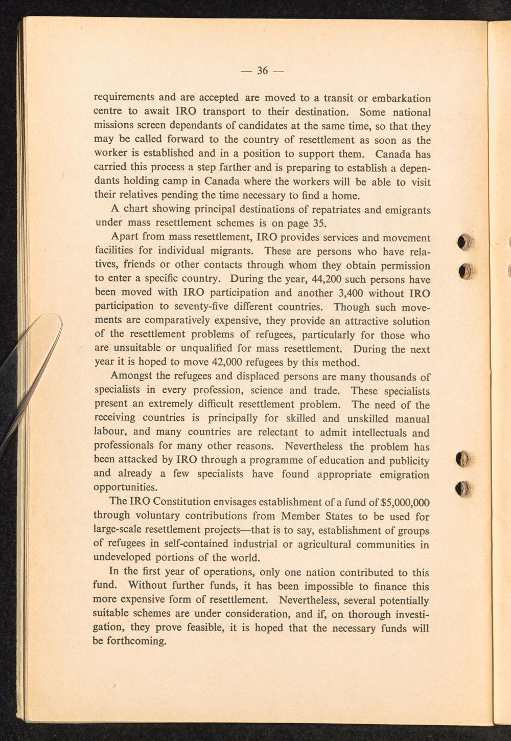 Report to the General Council of the International Refugee Organization by the Executive... Section VIII: Repatriation and Resettlement