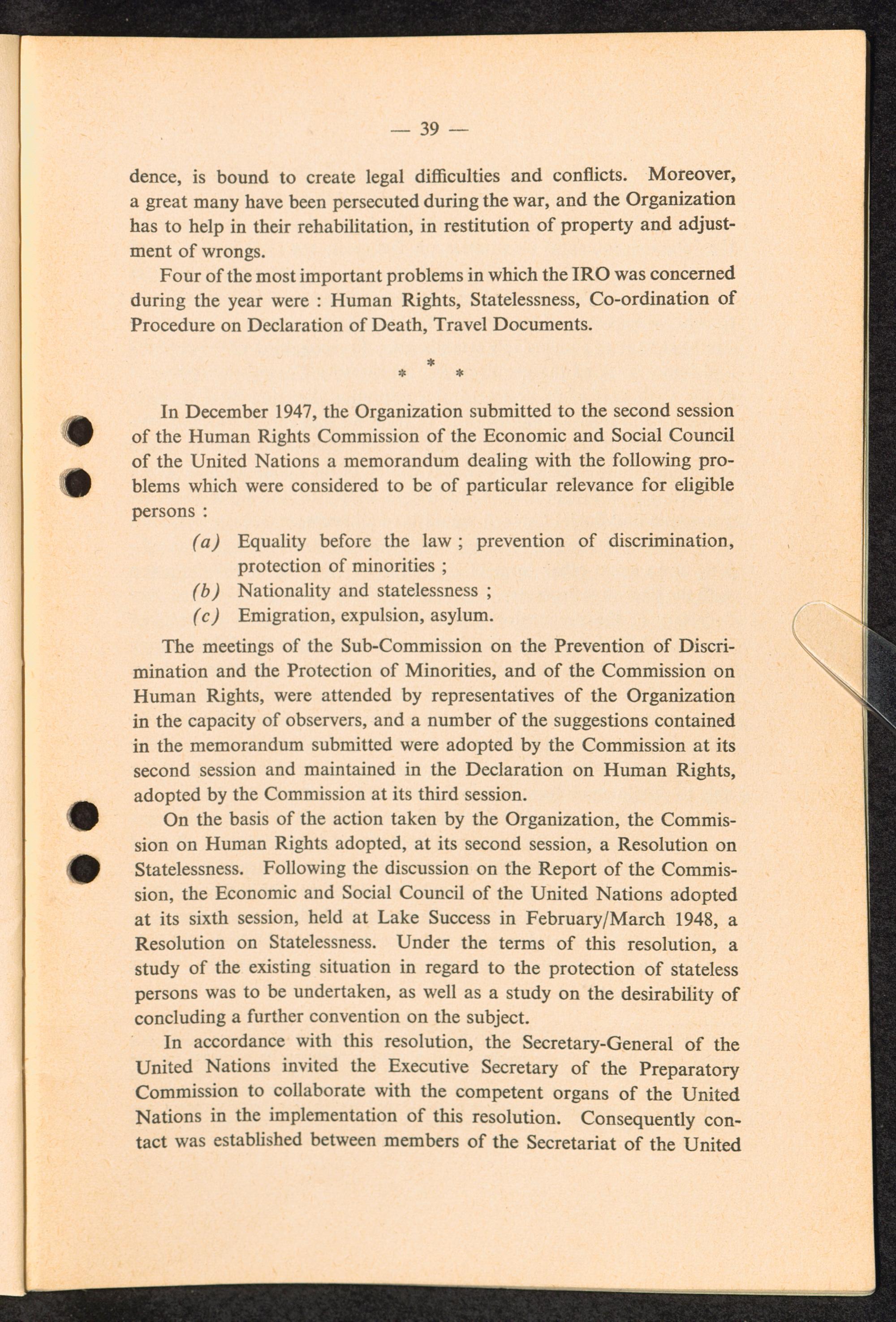 Report to the General Council of the International Refugee Organization by the Executive... Section IX: Legal and Political Protection