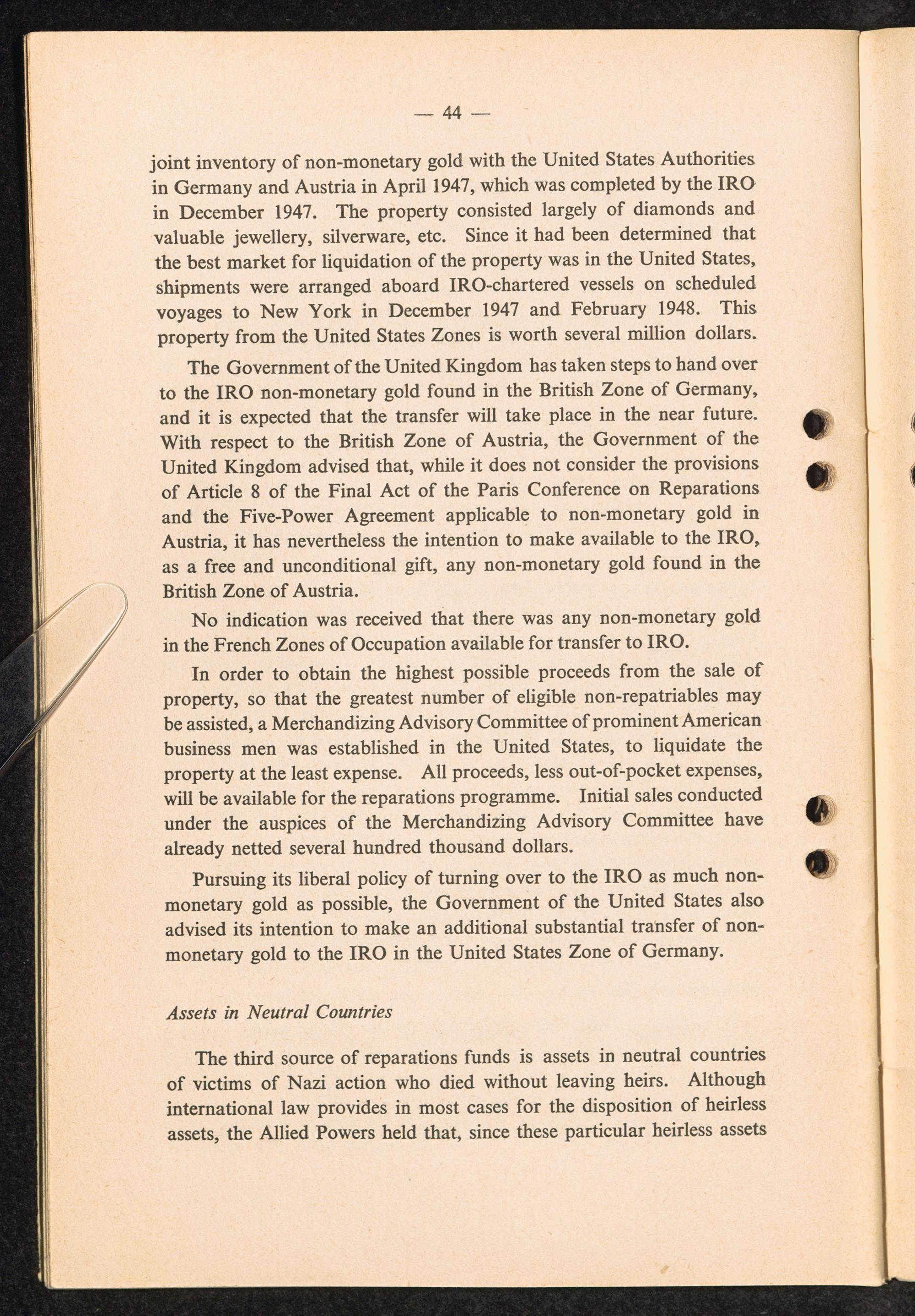 Report to the General Council of the International Refugee Organization by the Executive... Section X: Reparations