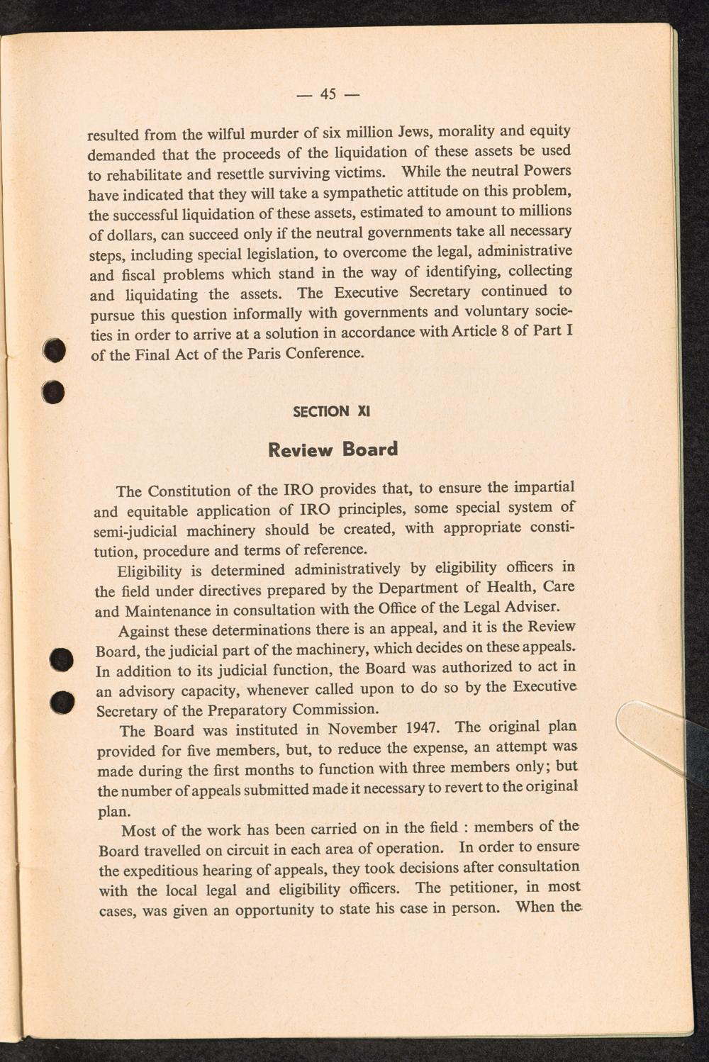 Report to the General Council of the International Refugee Organization by the Executive... Section X: Reparations