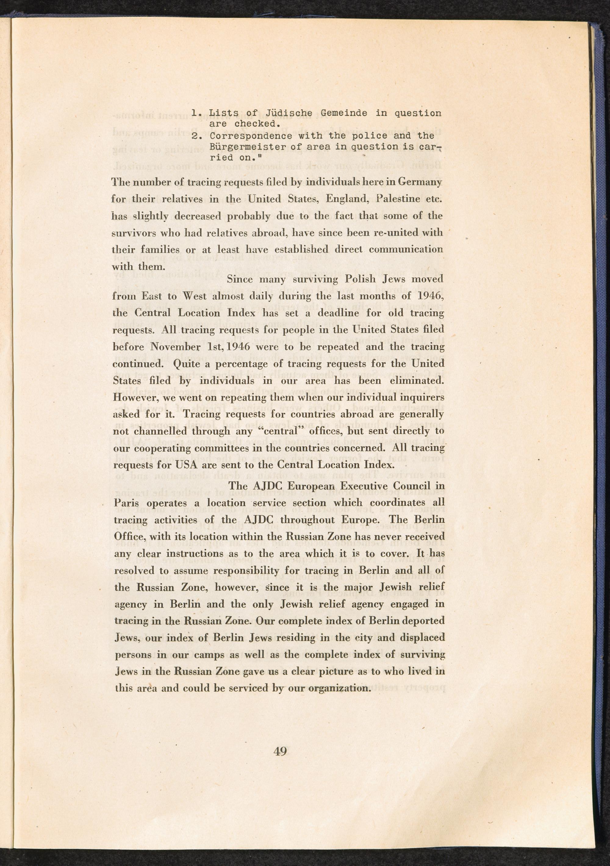 Berlin AJDC Tracing Office 1945 - 1947 Current Activities