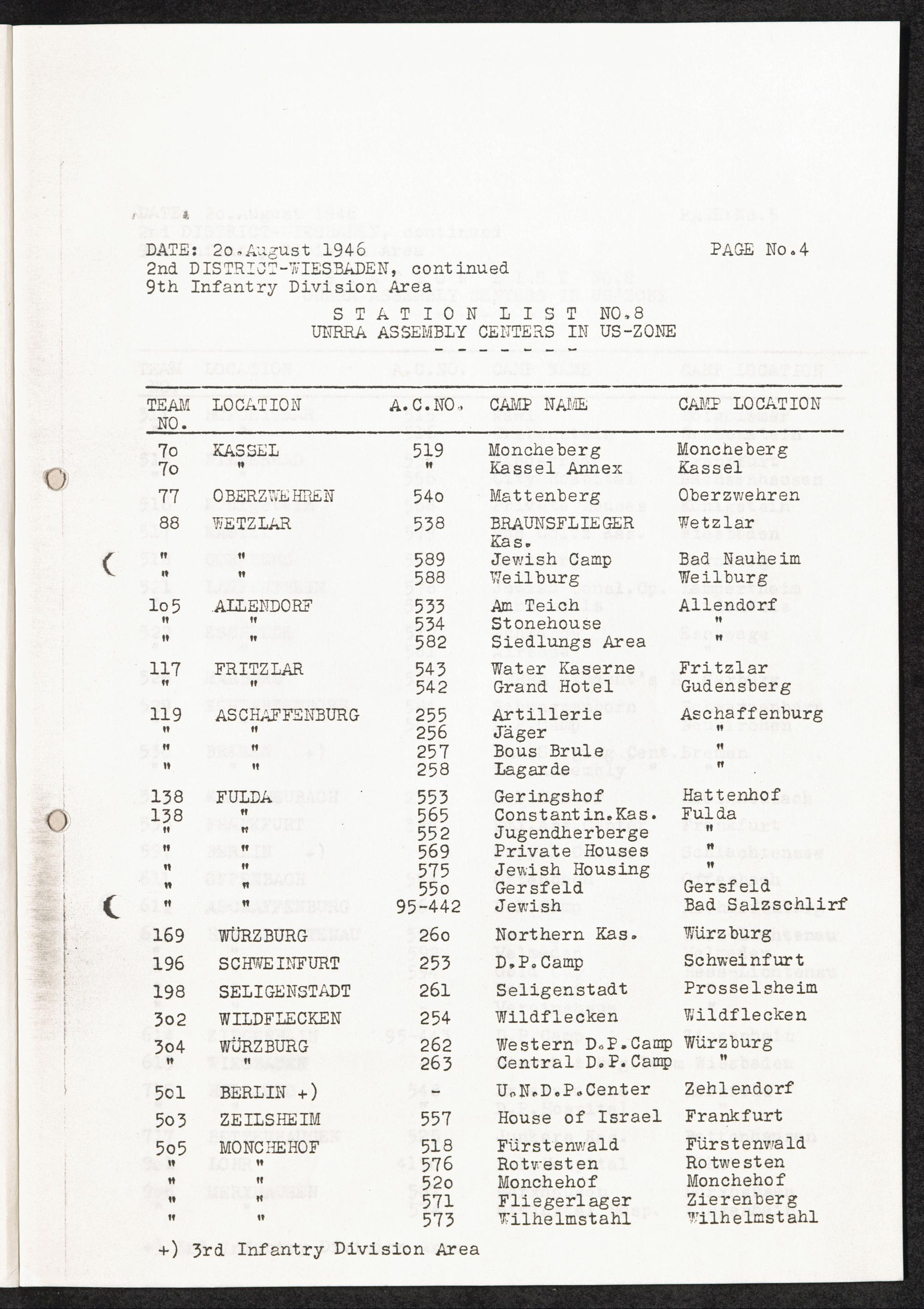 Station List No. 8 : UNRRA Assembly Centers in US-Zone / UNRRA