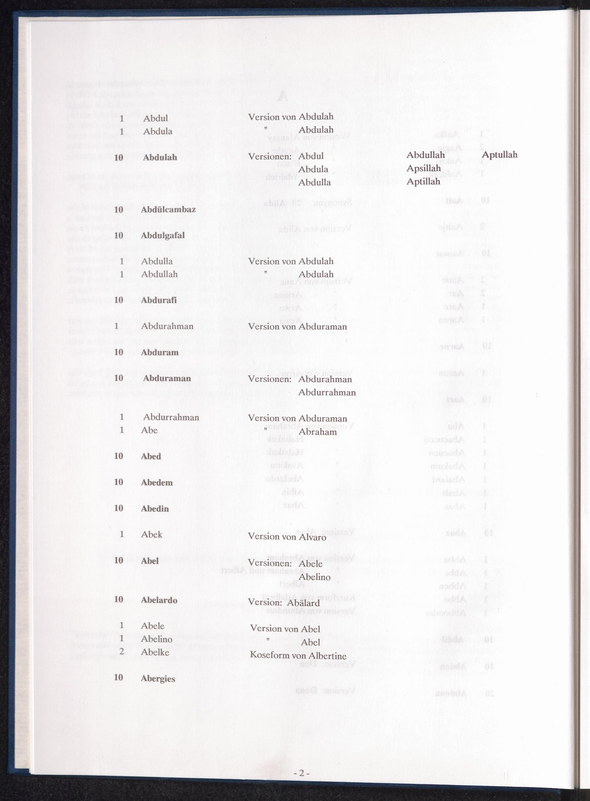 Band 1 (1992) Register of first names, A - KBand 1 (1992) Verzeichnis der Vornamen, A - KBand 1 (1992) Répertoire des prenoms, A - K