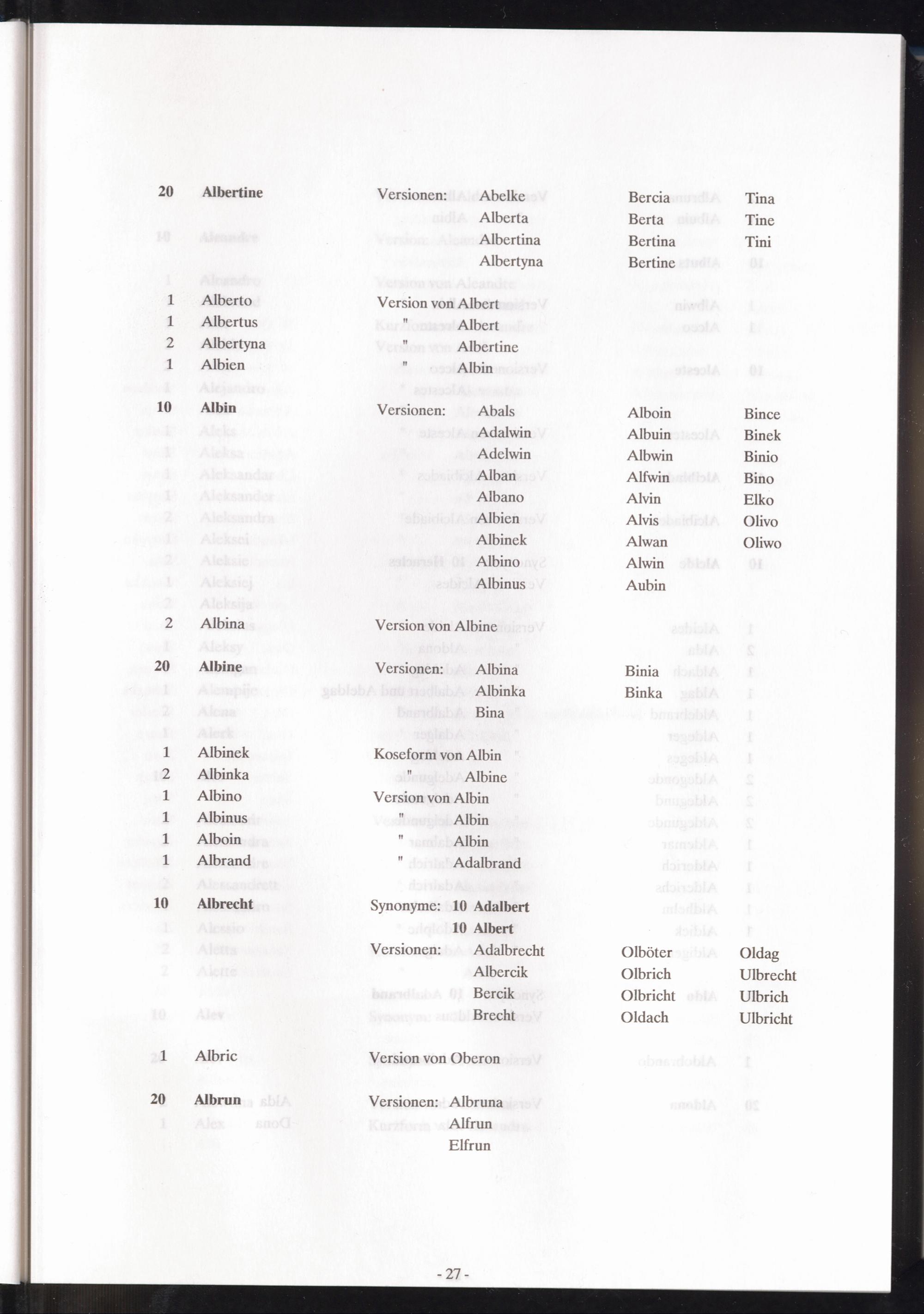 Band 1 (1992) Register of first names, A - KBand 1 (1992) Verzeichnis der Vornamen, A - KBand 1 (1992) Répertoire des prenoms, A - K