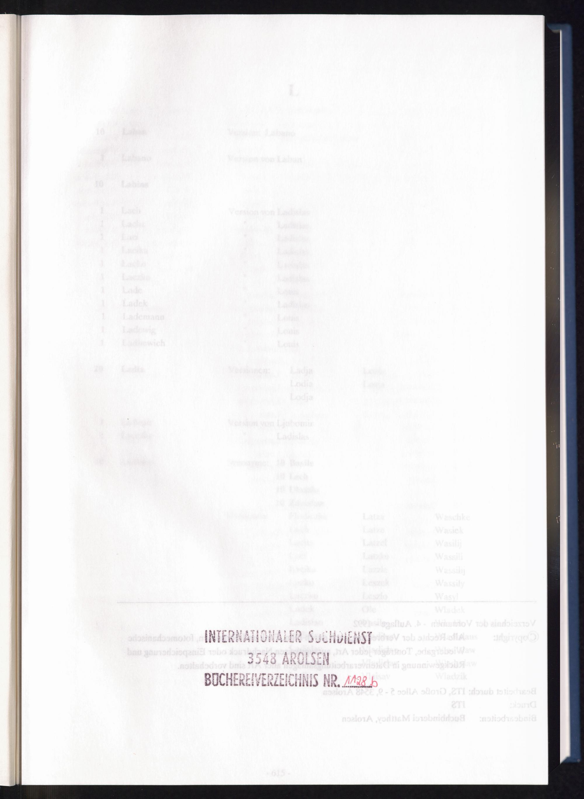 Band 2 (1992) Register of first names, L - ZBand 2 (1992) Verzeichnis der Vornamen, L - ZBand 2 (1992) Répertoire des prenoms, L - Z