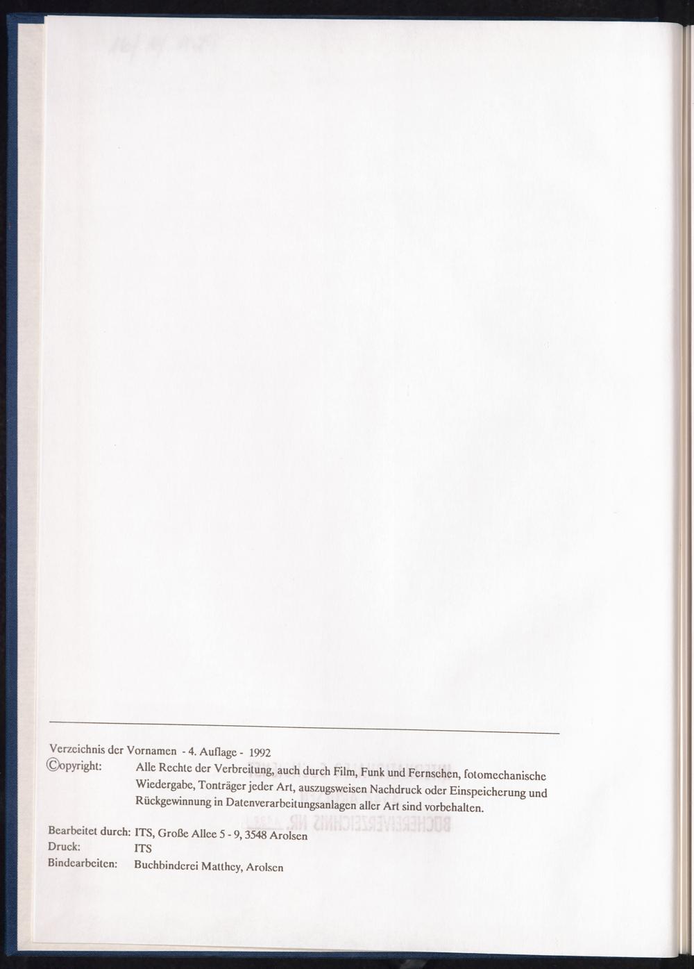 Register of first names Band 2. Register of first names, L - Z Vorderdeckel