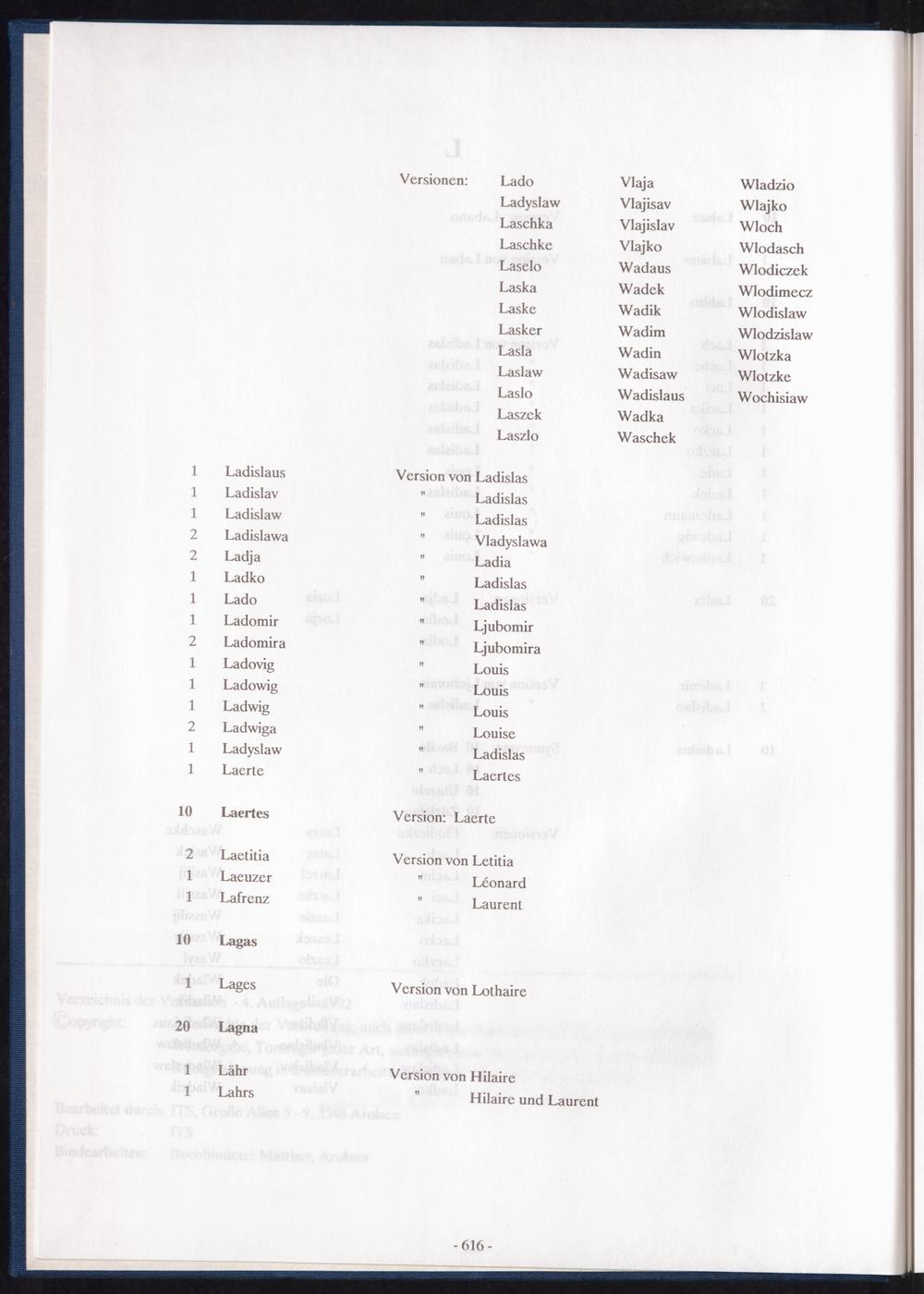 Band 2 (1992) Register of first names, L - ZBand 2 (1992) Verzeichnis der Vornamen, L - ZBand 2 (1992) Répertoire des prenoms, L - Z