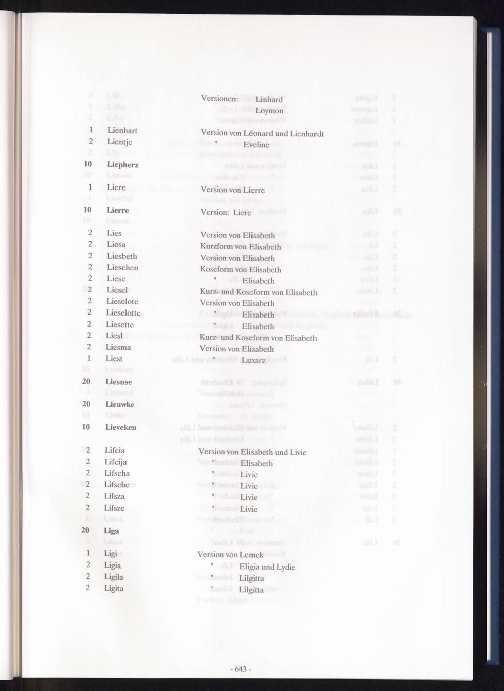 Band 2 (1992) Register of first names, L - ZBand 2 (1992) Verzeichnis der Vornamen, L - ZBand 2 (1992) Répertoire des prenoms, L - Z