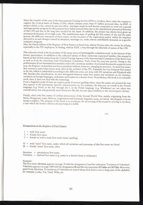 Register of first names / International Tracing Service (ITS)Verzeichnis der Vornamen / International Tracing Service (ITS)Répertoire des prenoms / International Tracing Service (ITS)